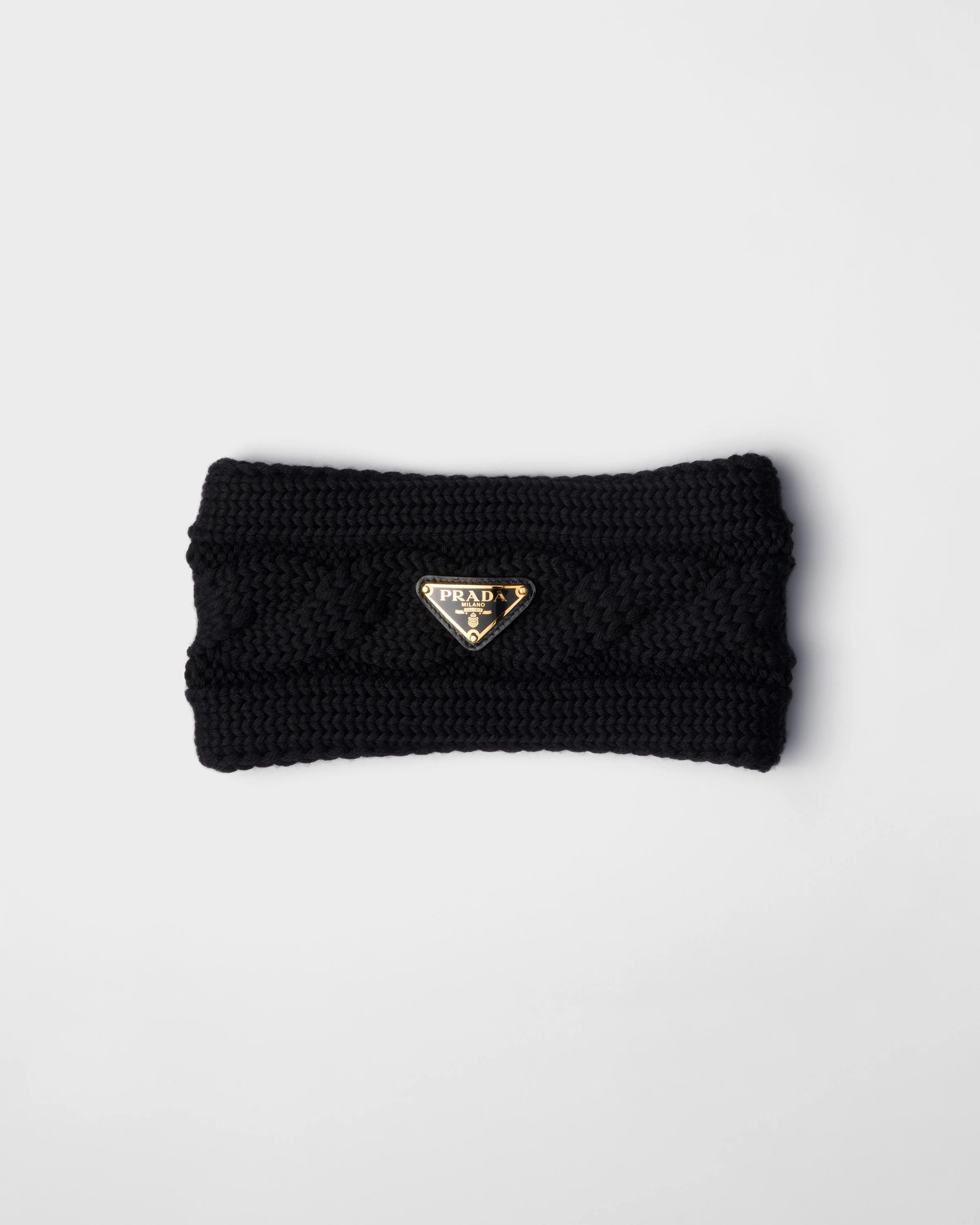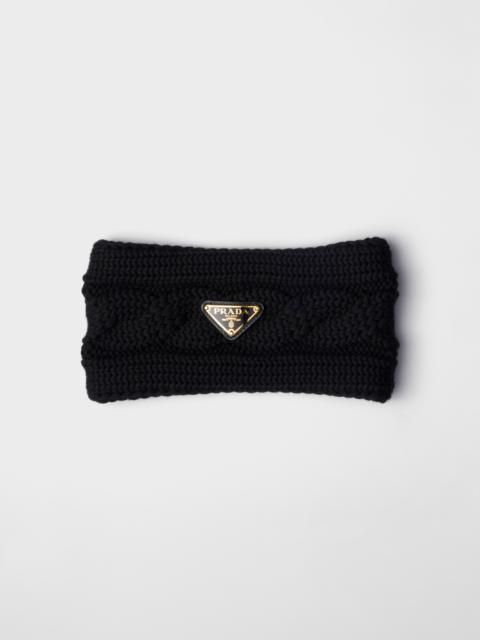 A cable-knit motif embellishes this wool headband decorated with the iconic enameled metal triangle logo. - Product code: 1IH089_2CNW_F0002 - Enameled metal triangle logo - Imported Height: 9cm MATERIALS Main material: Virgin wool