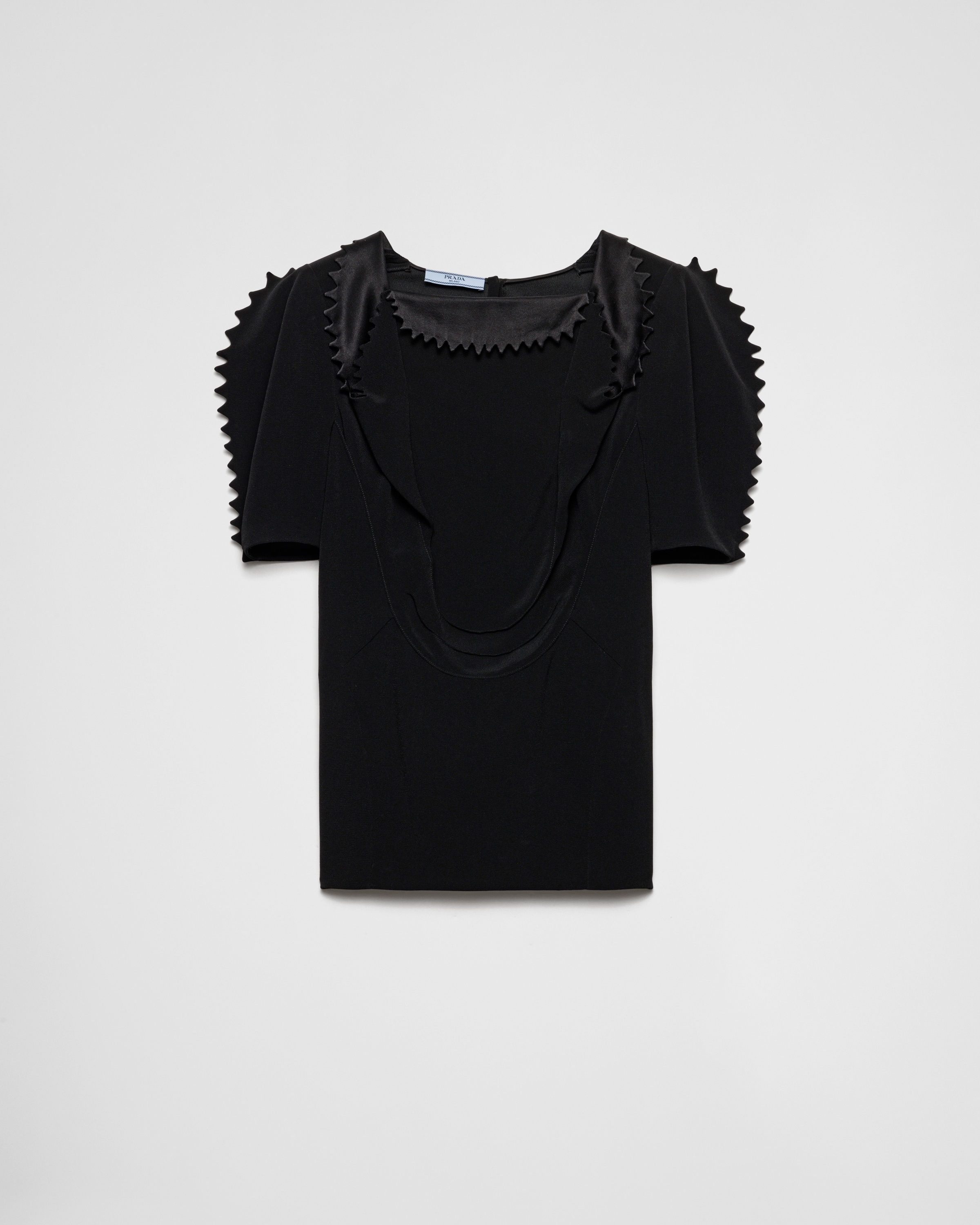 Retro details and modernist lines define this cady crepe top with a distinctive and refined style featuring a sophisticated silhouette and puffy sleeves. - 商品品番: P991M_15VR_F0002_S_OOO - Straight fit - Square neckline - Center-back closure with hidden snaps - Puffy sleeves - インポート - The model is 176 cm tall and wears a size 38 高さ: 65cm MATERIALS 主な素材: 100% viscose