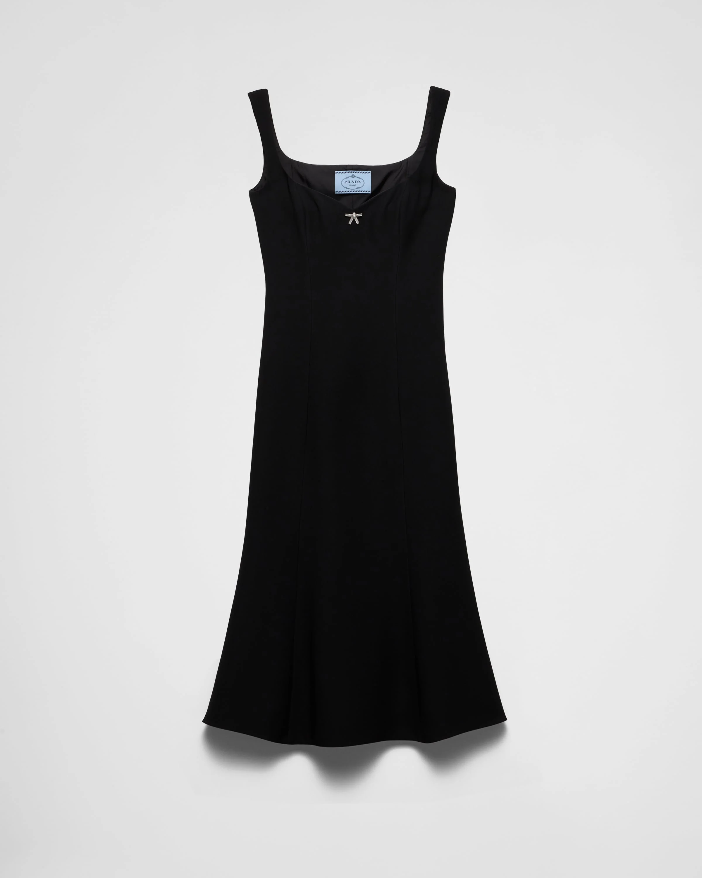 A small bow, with luminous details, embellishes the neckline of this cady dress that exudes refined elegance. - Product code: P3O27R_155P_F0002_S_OOO - Sheath dress fit - Lined - Wide neckline with shoulder straps - Side zip fastening - Flared bottom - Jewelled bow detail - Imported - The model is 180 cm tall and wears a size 38 Height: 120cm MATERIALS Main material: 100% viscose