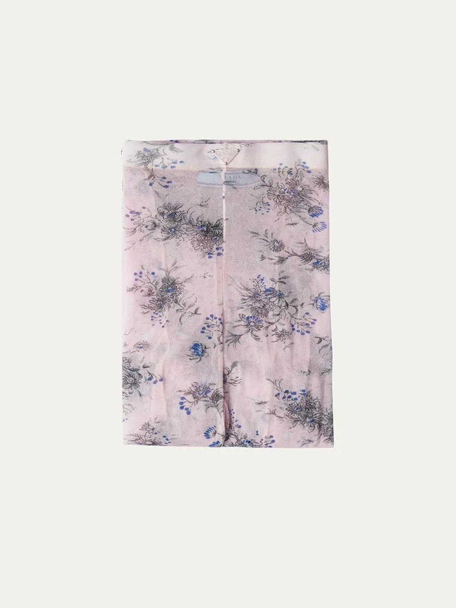 Prada semisheer tulle tights printed with calendulas Highrise waistband Signature triangle logo plaque Secondskin fit Pullon style Nylon/polyamide Dry clean Made in Italy