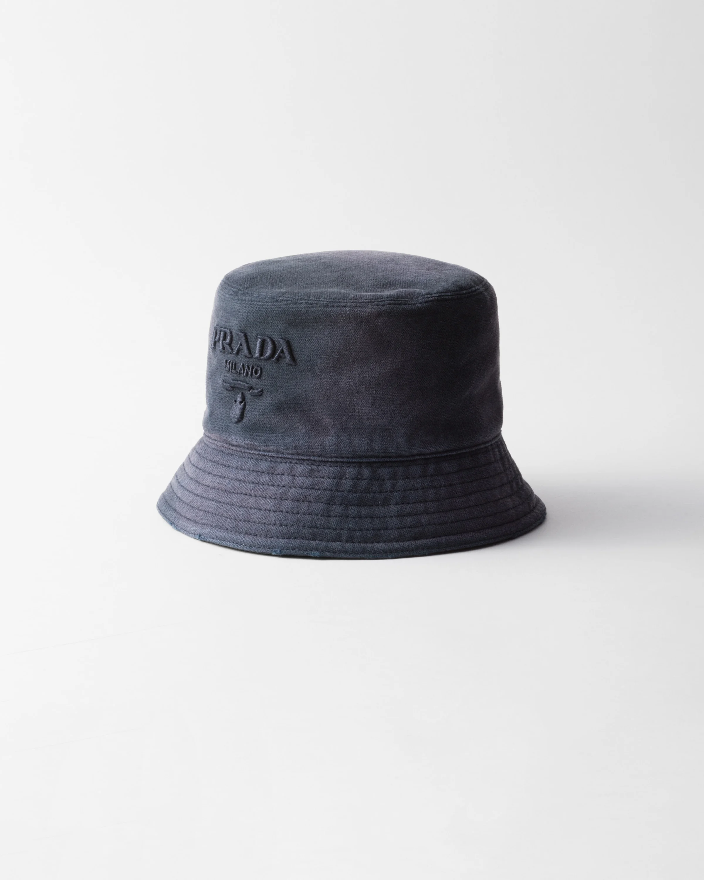 The bucket hat is reinterpreted with a used-effect canvas design that gives the iconic style a new attitude. The accessory is enriched with the tonal embroidered lettering logo. - Product code: 1HC137_2C1S_F0216 - Embroidered lettering logo - Cotton lining - Imported MATERIALS Main material: Cotton