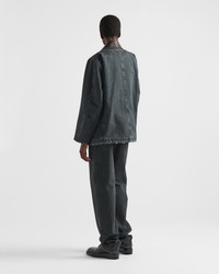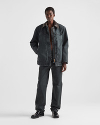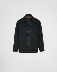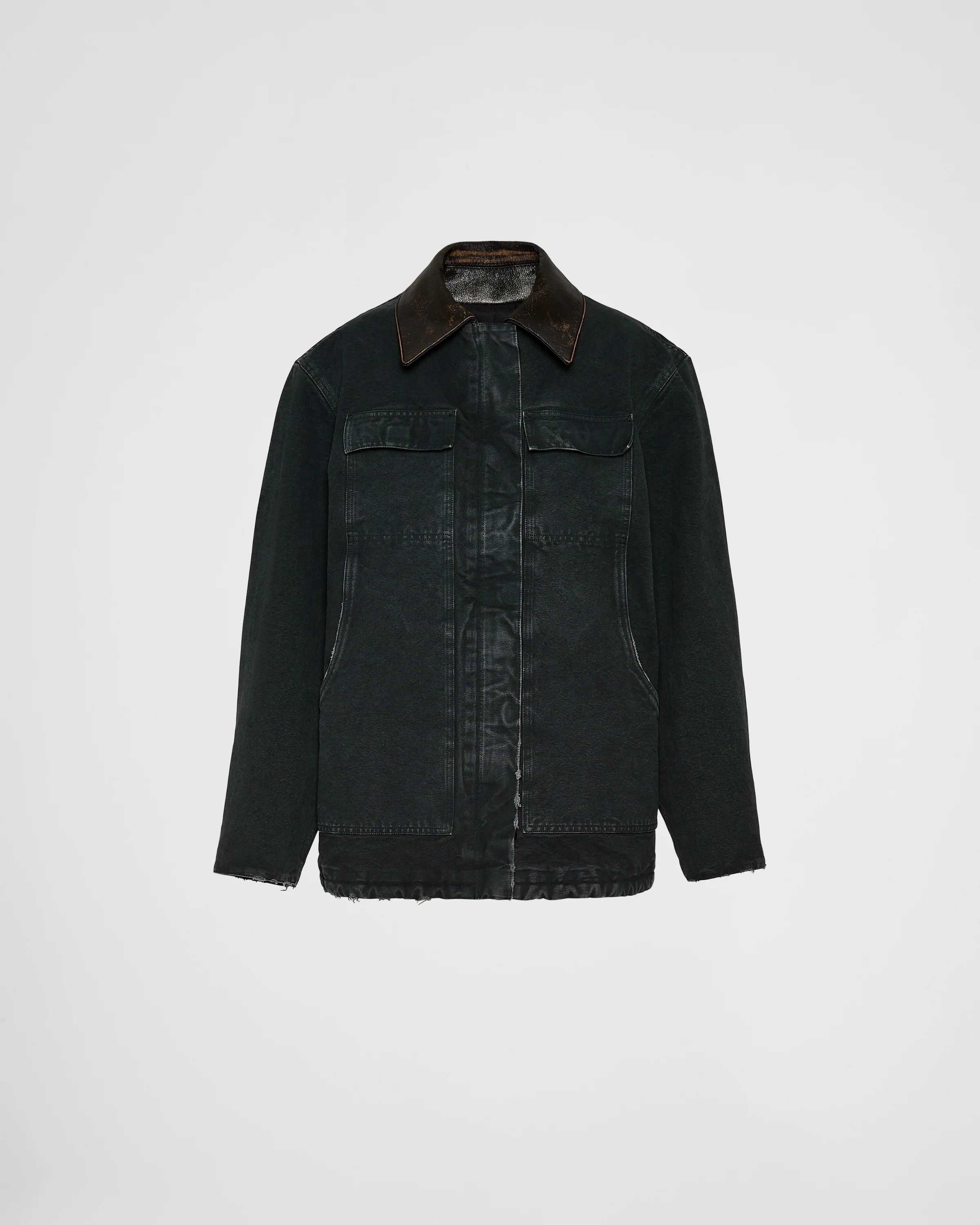 This canvas trucker jacket features an oversized silhouette, emphasized by the worn finish that gives the style a unique and contemporary touch. The utility-inspired garment with leather collar is decorated with the triangle logo. - Product code: 29Y179_145O_F0031_S_OOO - Lined with eco-padding - Leather collar - Long sleeves--Zipper and button closure - Garment dyed treatment - Matching stitching - Flapped patch pockets on the chest - Triangle logo - Garment length: 72 cm, Size: 38 - Regular relaxed fit: Fits up to one size larger - Imported - The model is 177 cm tall and wears a size 38 Height: 72cm MATERIALS Main material: 30% cotton 70% recycled cotton