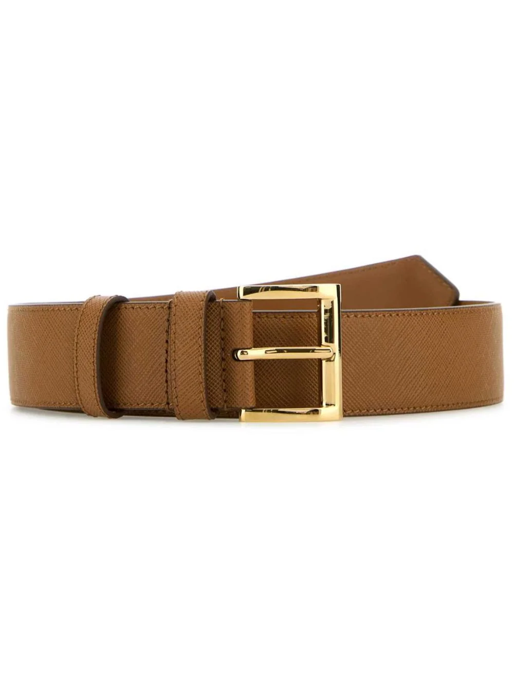 Caramel leather belt Highlights - Caramel brown - Leather - Logo plaque - Pin-buckle fastening - Punched holes - Adjustable fit Composition Leather 100% SIZE & FIT Measurement Minimum Length 23.62 in(60 cm) TOTAL LENGTH 27.55 in(70 cm) WIDTH 1.37 in(3.5 cm)