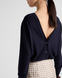 The sleek, versatile silhouette of this sweater is enriched by the soft, refined touch of cashmere. The style plays with unexpected details like the V neck also repeated on the back, embellished with an elegant button closure. - Product code: P24G2G_15DM_F0008_S_OOO - Long sleeves - Plain knit - Oversized fit - Ribbed knit trim - Saddle shoulder - Ribbed knit cuffs and hem - Back button closure - Imported - The model is 180 cm tall and wears a size 30 Height: 72cm MATERIALS Cashmere