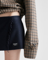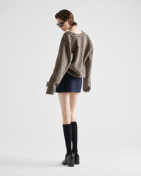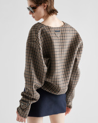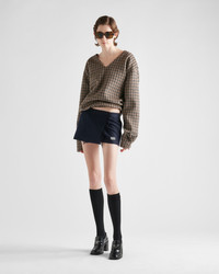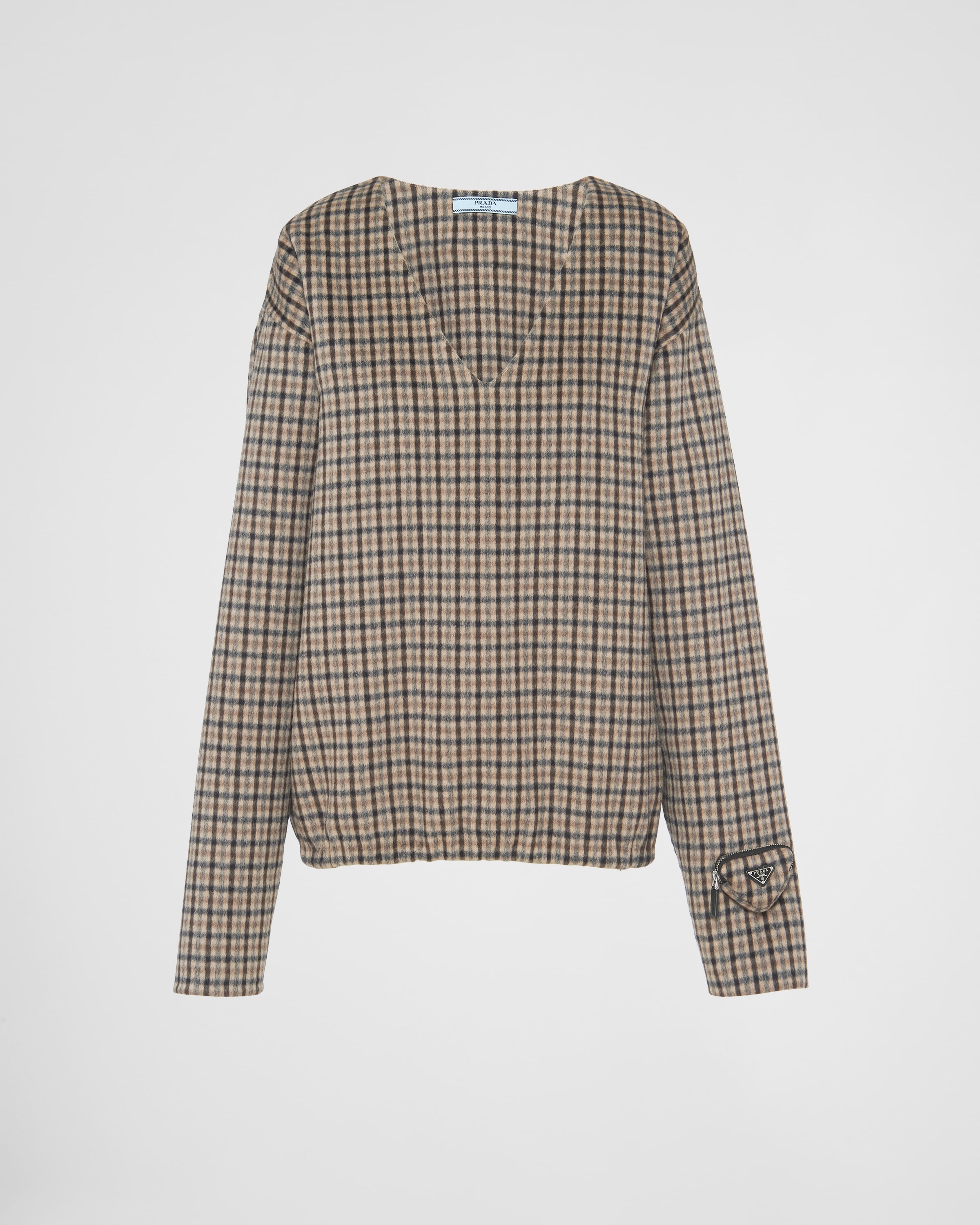 This luxurious long-sleeved check cashgora top expresses a versatile character that combines elegant materials with modern silhouettes. The style is completed with the emblematic triangular pouch on the sleeve. - Product code: P958L_13IA_F0005_S_232 - Oversized fit - V-neck - Long sleeves - Triangle logo with sartorial label - Gathered hem - Zipper pouch hand-stitched on the left sleeve - Height: 64cm - Imported MATERIALS Wool