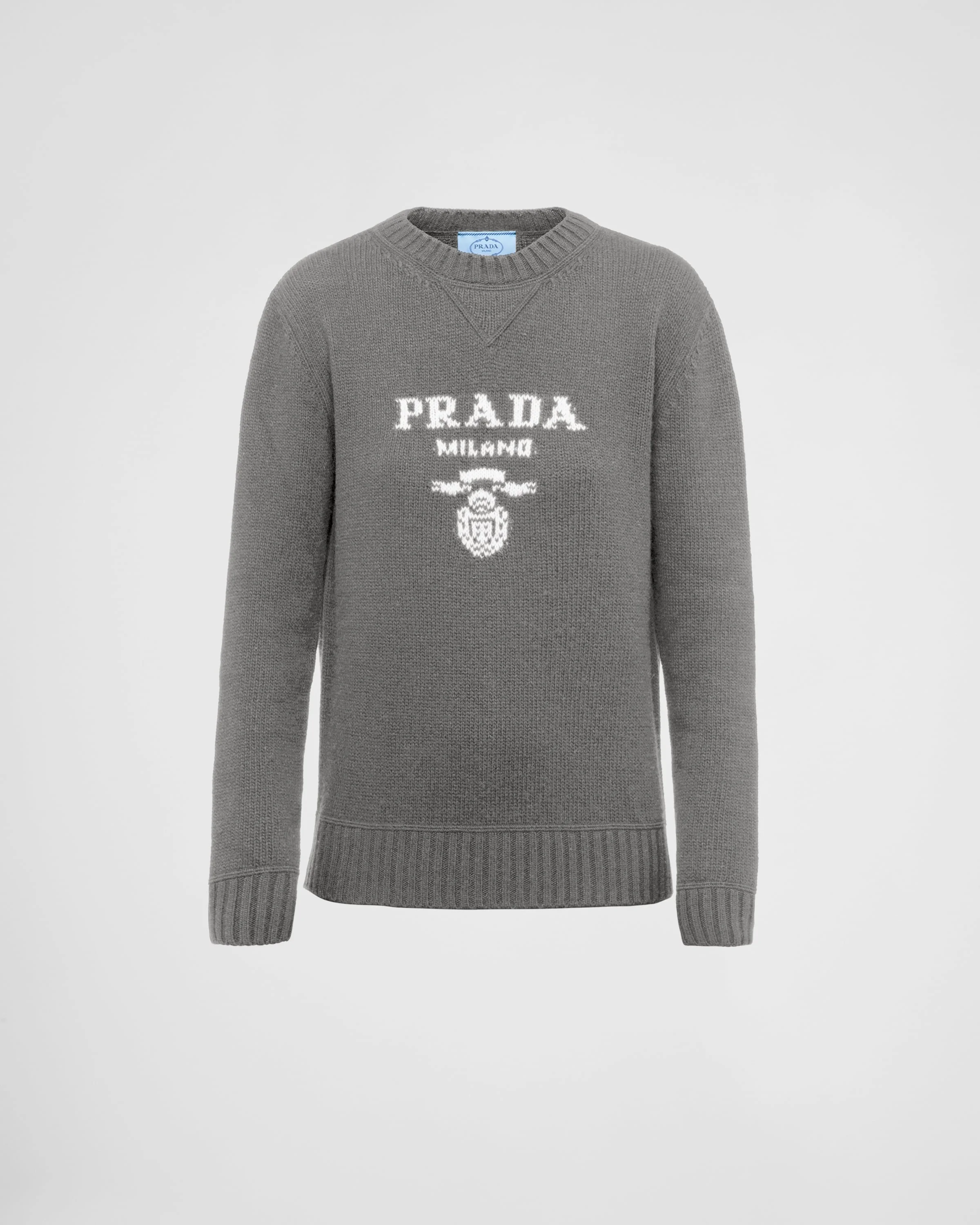 The Prada logo is presented as an intarsia that decorates this wool and cashmere crew-neck sweater. The sleek, iconic garment has a menswear fit and ribbed knit trim. - Product code: P24G1V_1YMW_F0031_S_232 - Cashmere and wool - Intarsia Prada logo - Menswear fit - Ribbed knit trim - Raglan sleeves - Imported Height: 60cm MATERIALS Main material: 30% cashmere 70% virgin wool