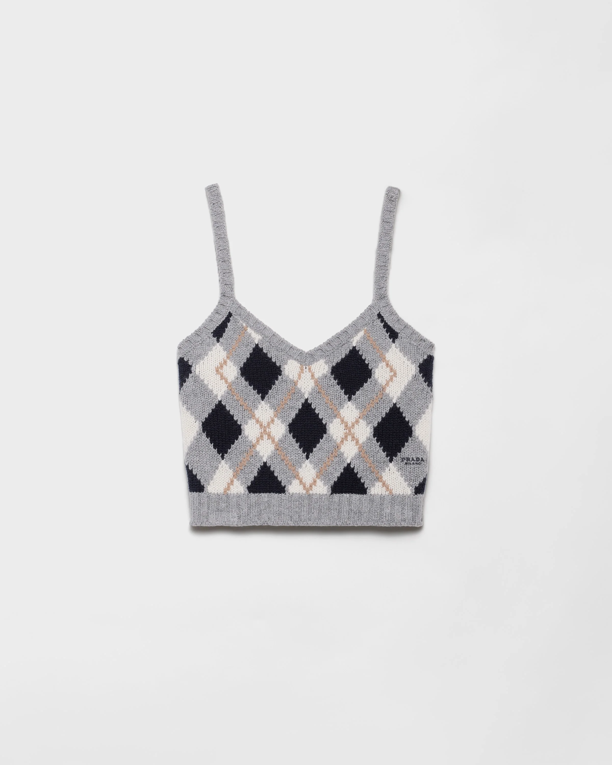 The bold geometric shapes of the argyle motif enrich this slim-fit top. The cashmere design combines softness and structure in a distinctive and sophisticated silhouette. - Product code: P29B87_172D_F0031_S_OOO - Jacquard knit - Slim-fit silhouette - Ribbed knit trim - Embroidered logo - Imported Height: 46cm MATERIALS Main material: 100% cashmere