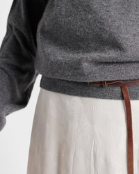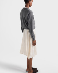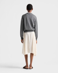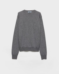 This sweater with a sleek shape and refined materials is made of fine cashmere with a soft silhouette trimmed with ribbed knit crew neck, cuffs and hem. The tonal triangle logo enriches the garment with minimalist elegance. - Product code: P24D2P_17O0_F0480_S_AEO - Long sleeves - Plain knit - Menswear fit - Ribbed knit crew neck - Semi-raglan shoulder - Ribbed knit cuffs and hem - Knit triangle logo - Imported - The model is 177 cm tall and wears a size 38 Height: 62cm MATERIALS Main material: 100% cashmere