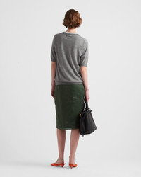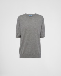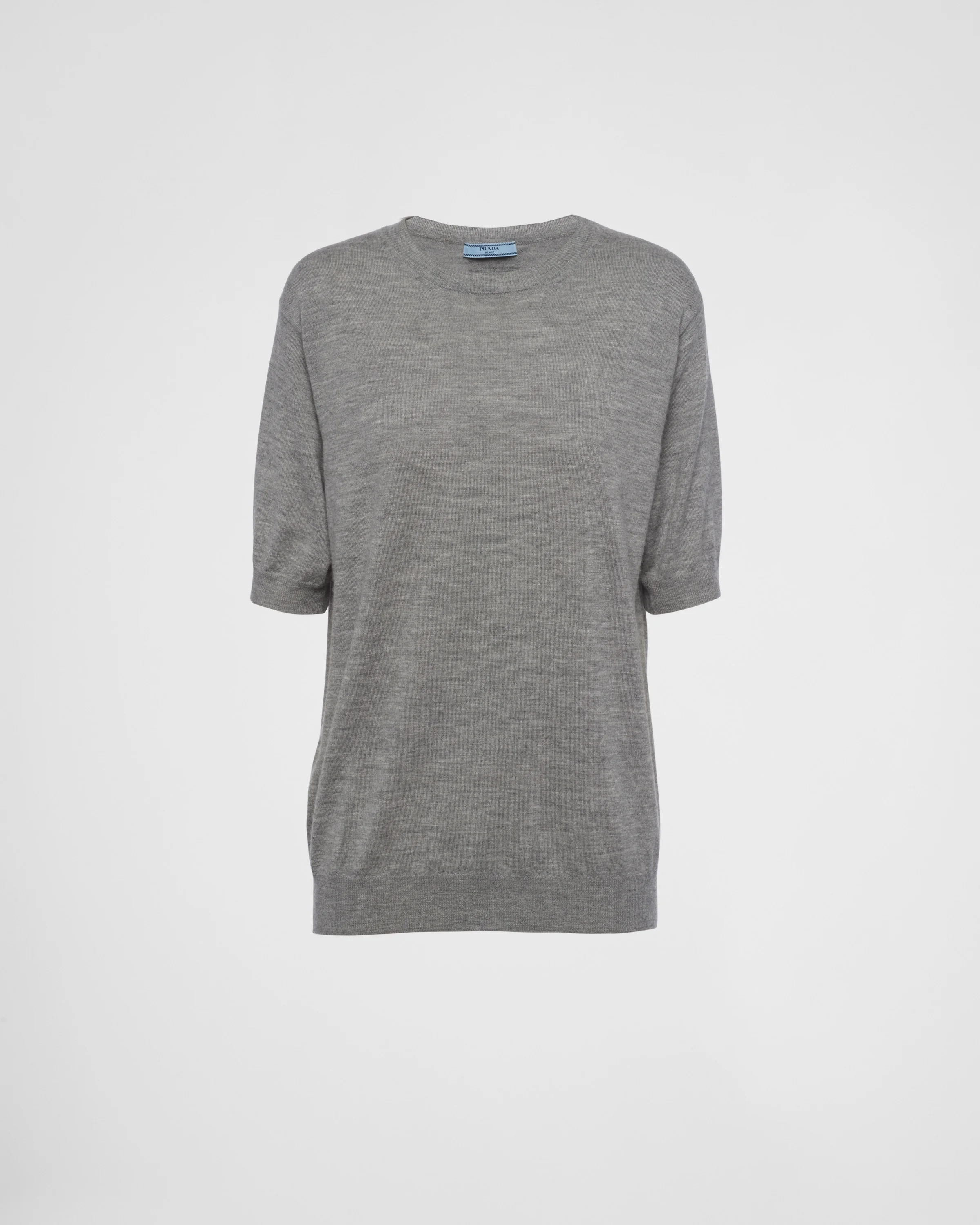 This refined, minimalist crew-neck sweater is made of fine, soft cashmere with a plain knit. The versatile style with a menswear fit has ribbed knit trim, while the sartorial label and knit triangle logo enhance the look with a distinctive yet simple note. - Product code: P24D2Q_10LJ_F0031_S_OOO - Short sleeves - Plain knit - Menswear fit - Ribbed knit collar - Semi-raglan shoulder - Ribbed knit cuffs and hem - Knit triangle logo and sartorial label - Imported - The model is 178 cm tall and wears a size 38 Height: 62cm MATERIALS Main material: 100% cashmere