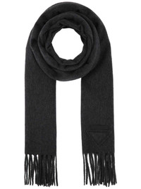 cashmere scarf Highlights - Charcoal grey - Cashmere - Brushed effect - Wraparound style - Fringed edge - Triangle logo Composition Cashmere 100% SIZE & FIT Measurement LENGTH 110.23 in(280 cm) WIDTH 11.81 in(30 cm) Washing instructions Read Manufacturer Guidelines