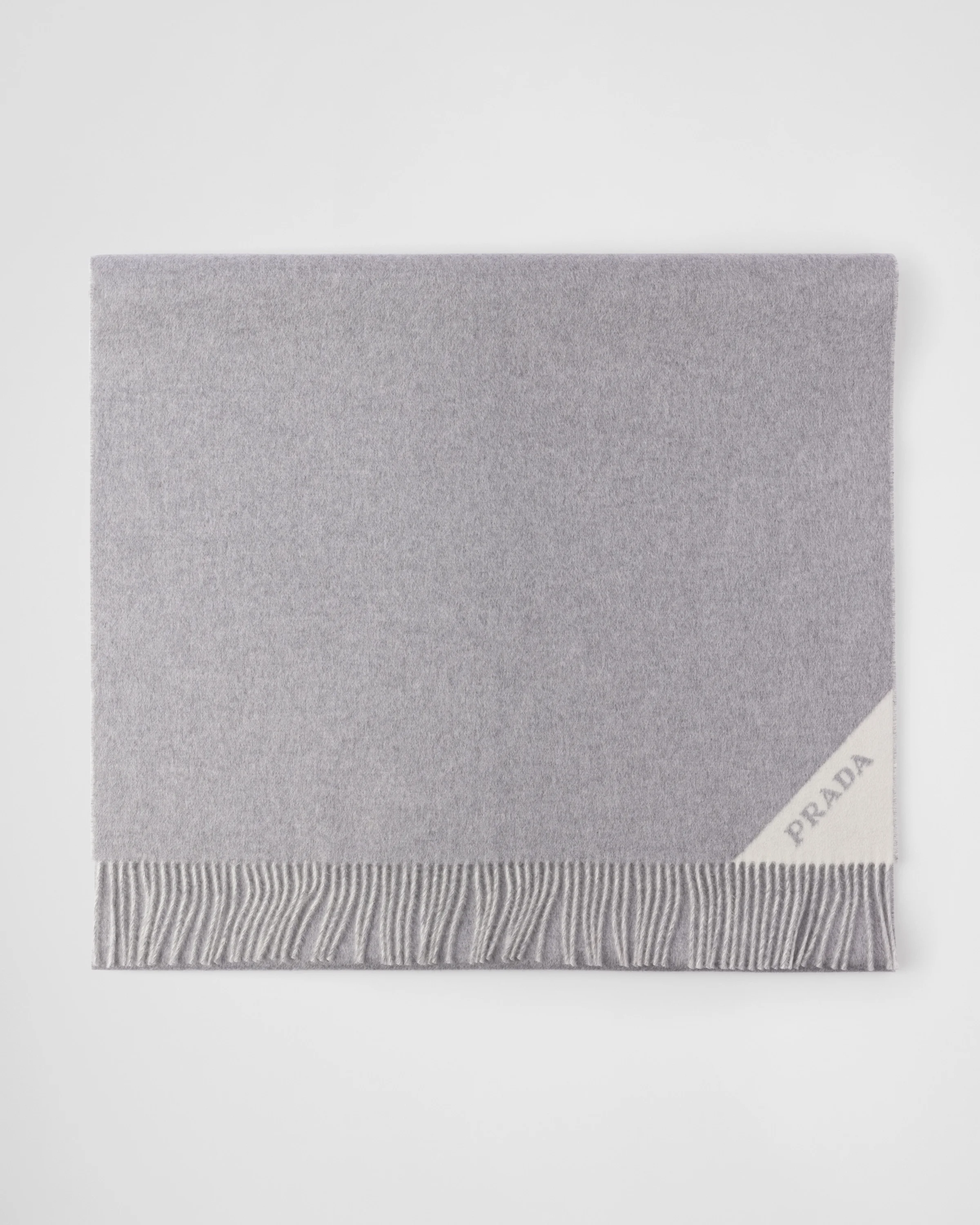 This sleek stole is made of soft, warm cashmere with a reversible design, animated by contrasting colors. The jacquard logo decorates the accessory with a distinctive touch. - Product code: 1FS073_2COO_F0N8C - Jacquard logo - Two-tone double face fabric - Fringe on two sides - 100% cashmere - Imported Height: 185cm Width: 70cm MATERIALS Main material: Cashmere