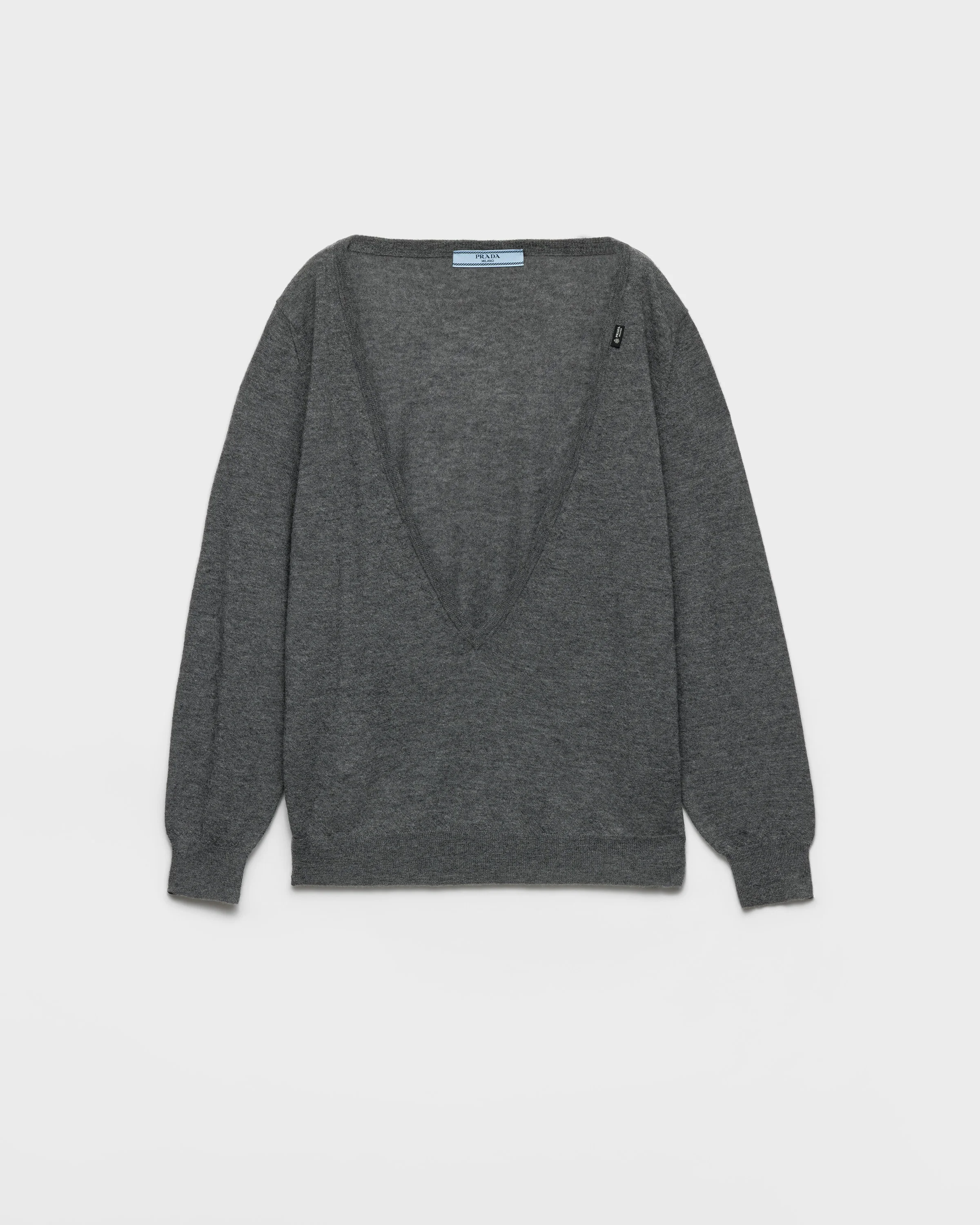 This cashmere sweater redefines a menswear classic with unexpected details. The plunging V neck frames the style characterized by a soft, tactile texture. - Product code: P24C3G_19VK_F0480_S_OOO - Long sleeves - Plain knit - Menswear fit - Ribbed knit trim - Semi-raglan shoulder - Ribbed knit cuffs and hem - Logo patch - Imported - The model is 178 cm tall and wears a size 38 Height: 63cm MATERIALS Main material: 100% Cashmere