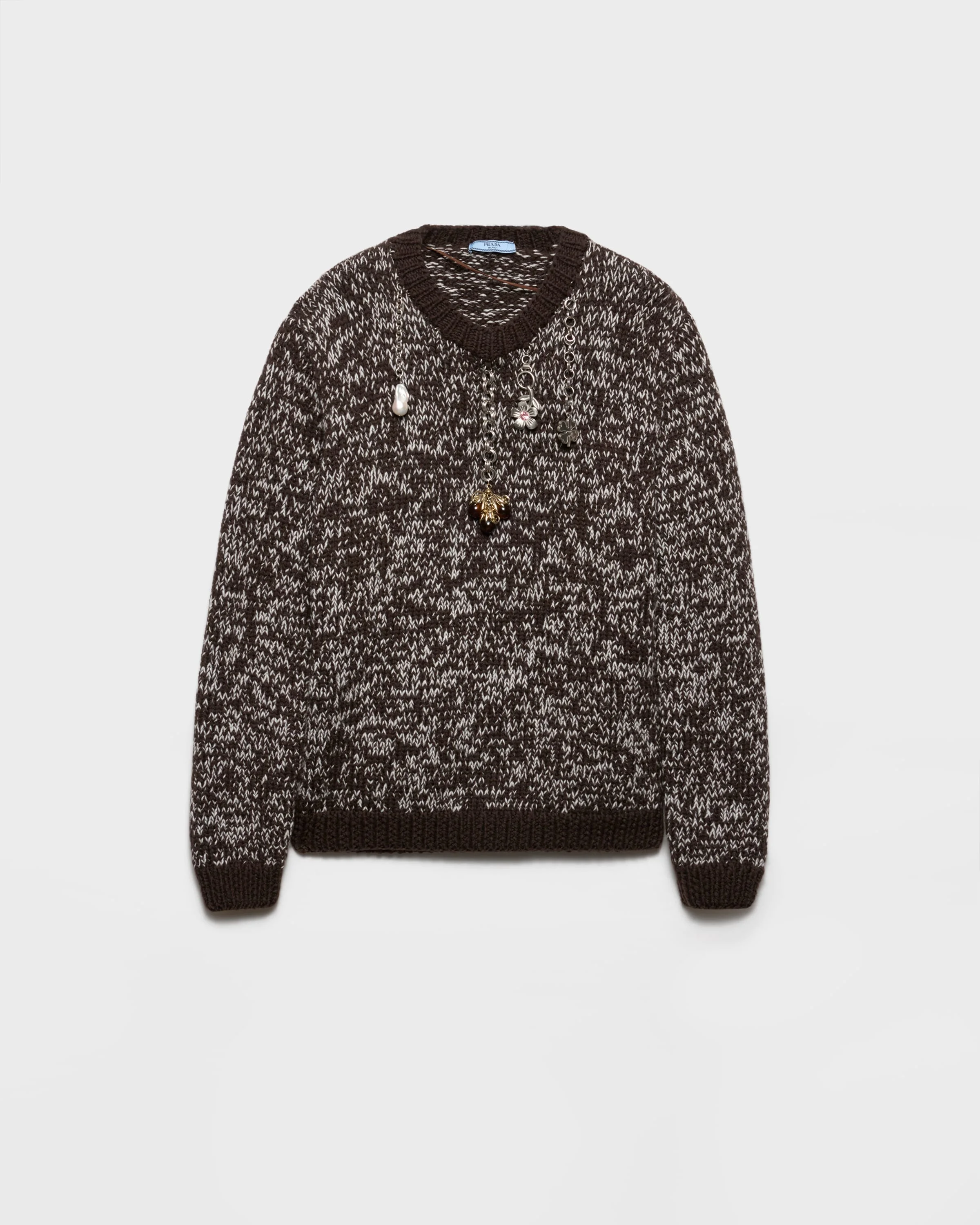 For the Fall/Winter 2025 collection, knitwear is enriched with jewel details and precious embellishments. This wool sweater with a slim silhouette is embellished with metal details in a new dialog between classic shapes and symbolic meanings. - Product code: P24U2F_18HH_F056L_S_OOO - Long sleeves - Plain knit - Oversized fit - Ribbed knit crew neck - Regular shoulder - Imported - The model is 178 cm tall and wears a size 38 Height: 68cm MATERIALS Main material: 100% Virgin Wool