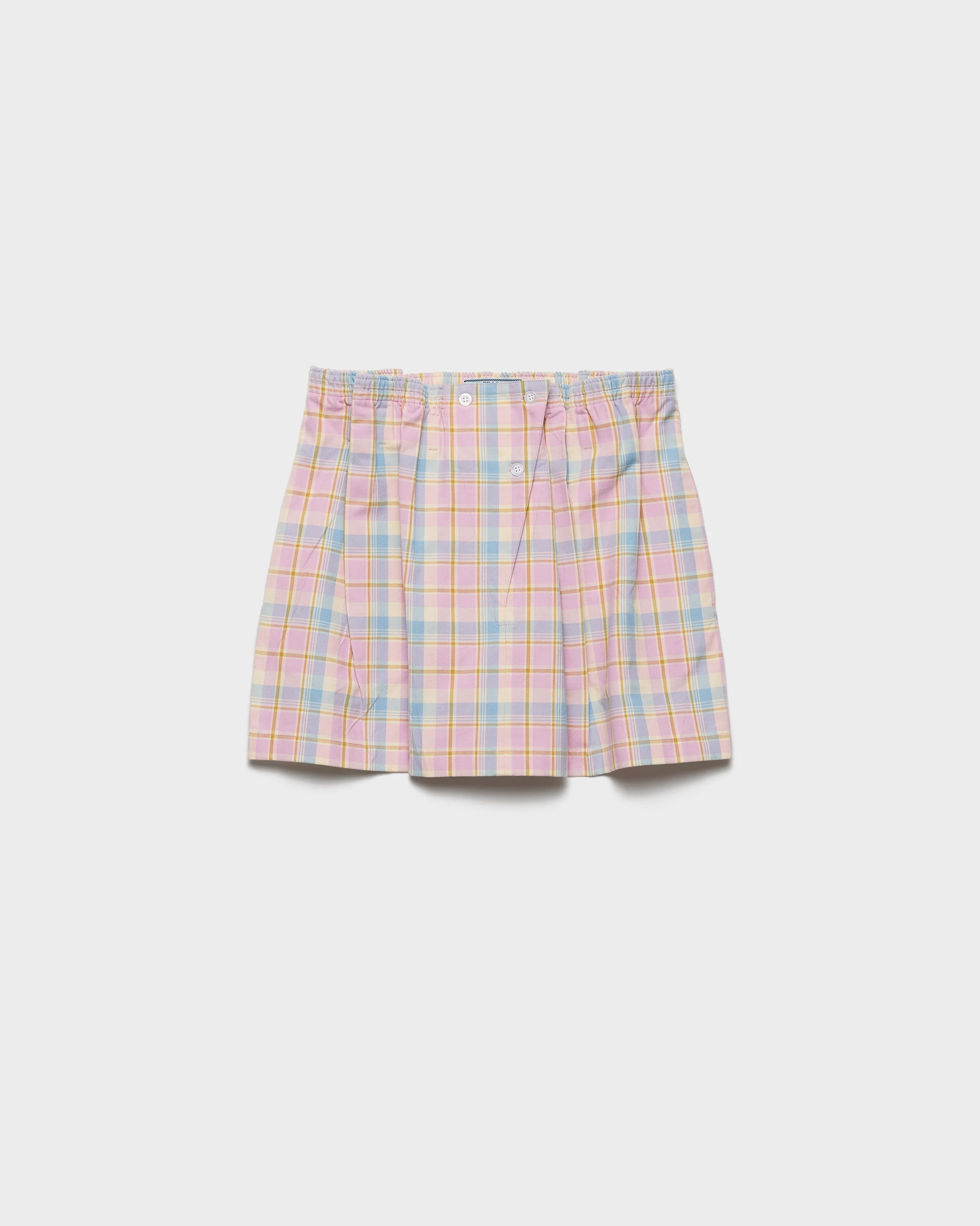 The design of this mini-skirt reinvents the pajama as a garment for everyday use. The cotton style features a silhouette gathered at the waist, animated by a checked motif with vintage charm. The creased effect adds even more character to the style that redefines the functions of clothes and the way they are worn. - Product code: P148Z_171D_F0E18_S_OOO - Wide fit, gathered silhouette - Unlined garment - Inseam pockets - Imported - The model is 180 cm tall and wears a size 38 Height: 32cm MATERIALS Main material: 100% cotton