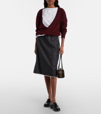 Prada takes Italian heritage into a distinctly modern direction with a streamlined and fashion-forward approach. Crafted from pure wool with all-over checked patterning, this midi skirt is shaped into a classic pencil-style silhouette. Product Details - Material: 100% virgin wool - Care instructions: dry clean - Made in Italy - Color: grey - Designer color name: Antracite - Elasticated waistband - Contains non-textile parts of animal origin - Item number: P01154880 Size & Fit - True to size - Elasticated waist - Non-stretchy fabric - High-waisted - Height of model is 174cm-68.5" and wears a size IT 40