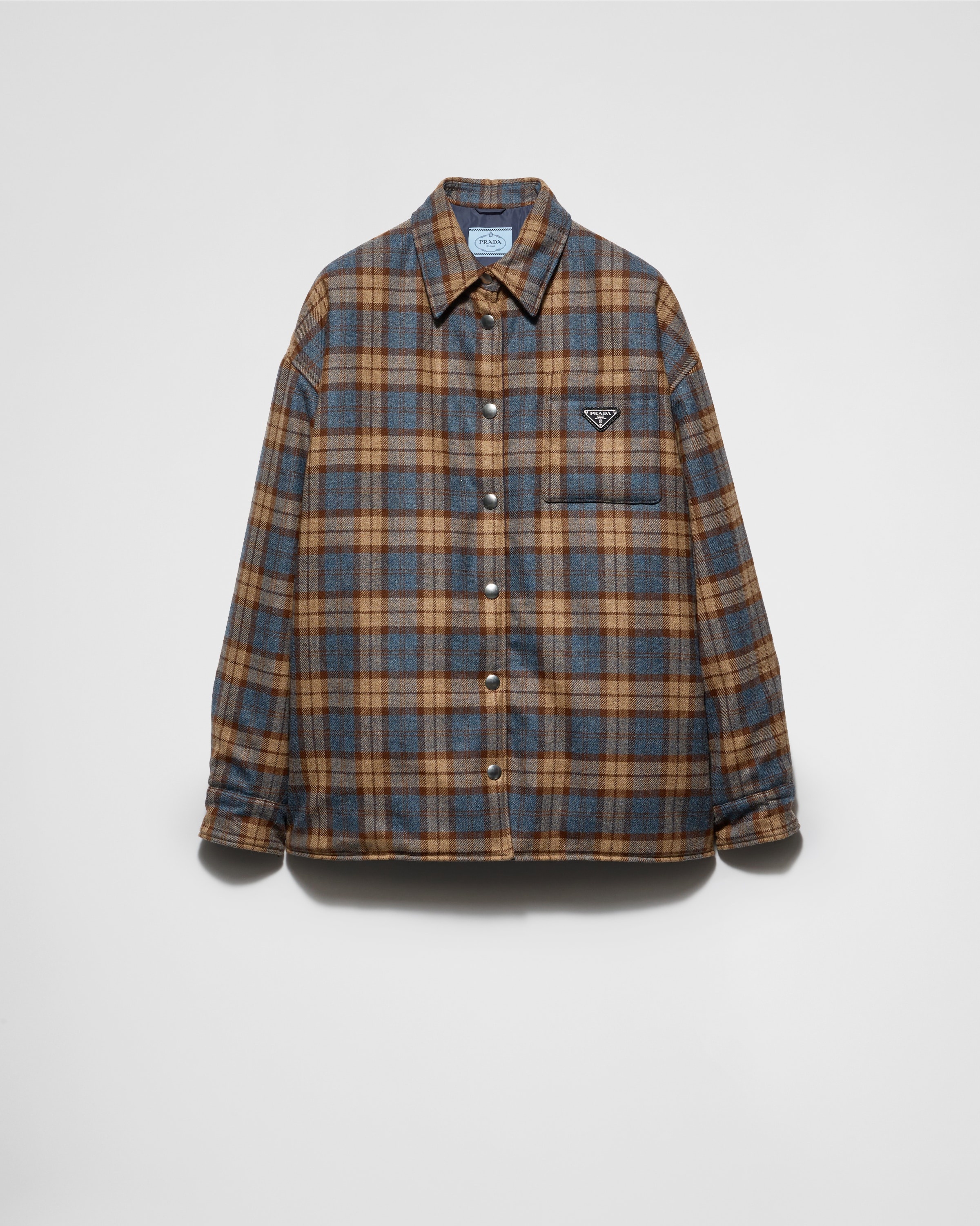 This checked wool twill lumberjack jacket defined by an oversized silhouette stands out for its casual style and relaxed attitude. - Product code: 29T060_15R7_F0005_S_OOO - Lined - Shirt-style collar - Long sleeves - Side slits - Cuffs with snaps - Snap closure - Patch pockets - Enameled metal triangle logo - Padding with wadding - Pressed garment - The relaxed fit garment runs one size larger. - Imported - The model is 178 cm tall and wears a size 38