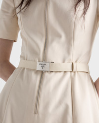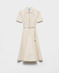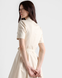 The classic elegance of this dress reinterpreted in a minimalist way acquires refined, contemporary nuances. The feminine silhouette with clean lines is emphasized by the belt with a plaque buckle that adds a casual note. - Product code: P3Q82H_10YP_F0018_S_OOO - Fit-and-flare - Unlined - Shirt collar - Metal zipper closure on the front - Short sleeves - Inseam pockets - Fabric logo - Flared hem - Belt with plaque buckle - Imported - The model is 180 cm tall and wears a size 38 Height: 115cm MATERIALS Main material: 100% cotton