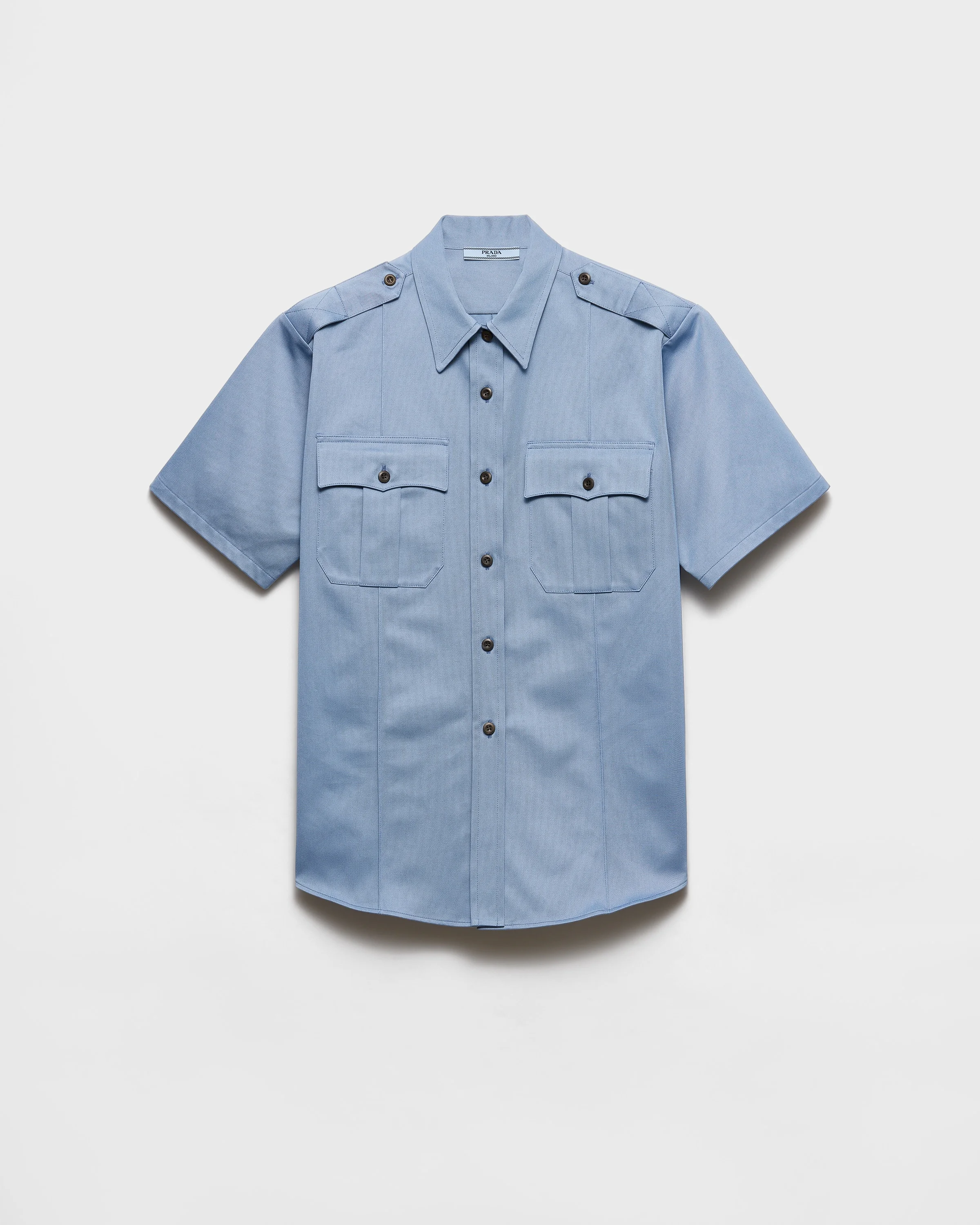 The Spring/Summer 2026 collection breaks the rules and redefines silhouettes and occasions of use, transforming the workwear shirt into a sophisticated garment. The pragmatic simplicity of the chino silhouette reflects a precise harmony between clean lines and essential details. - Product code: P411J_10YP_F0154_S_OOO - Menswear fit - Classic collar - Front button closure - Short sleeves - Flapped patch pocket - Fabric triangle logo - Ribbing on front and back - Imported Height: 69cm MATERIALS Main material: 100% Cotton
