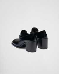 Brushed leather high-heel loafers