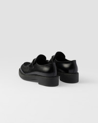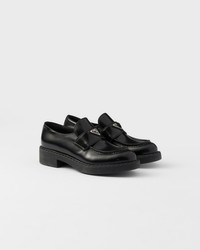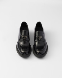 Emphasized by the iconic enameled triangle logo, these retro-inspired loafers are made of brushed leather, traditionally used in classic fine footwear and reinterpreted in Prada collections on unexpected designs for a hybrid result that reflects the duality of the brand. The notched effect of the welt around the shoe gives it a handcrafted touch. - Product code: 1D246M_ULS_F0002_F_G050 - Enameled metal triangle logo - 50 mm rubber monobloc sole with hot-stamped logo - Notched-effect stamped rubber welt - Imported MATERIALS Main material: Calfskin