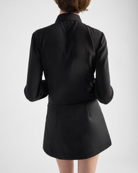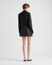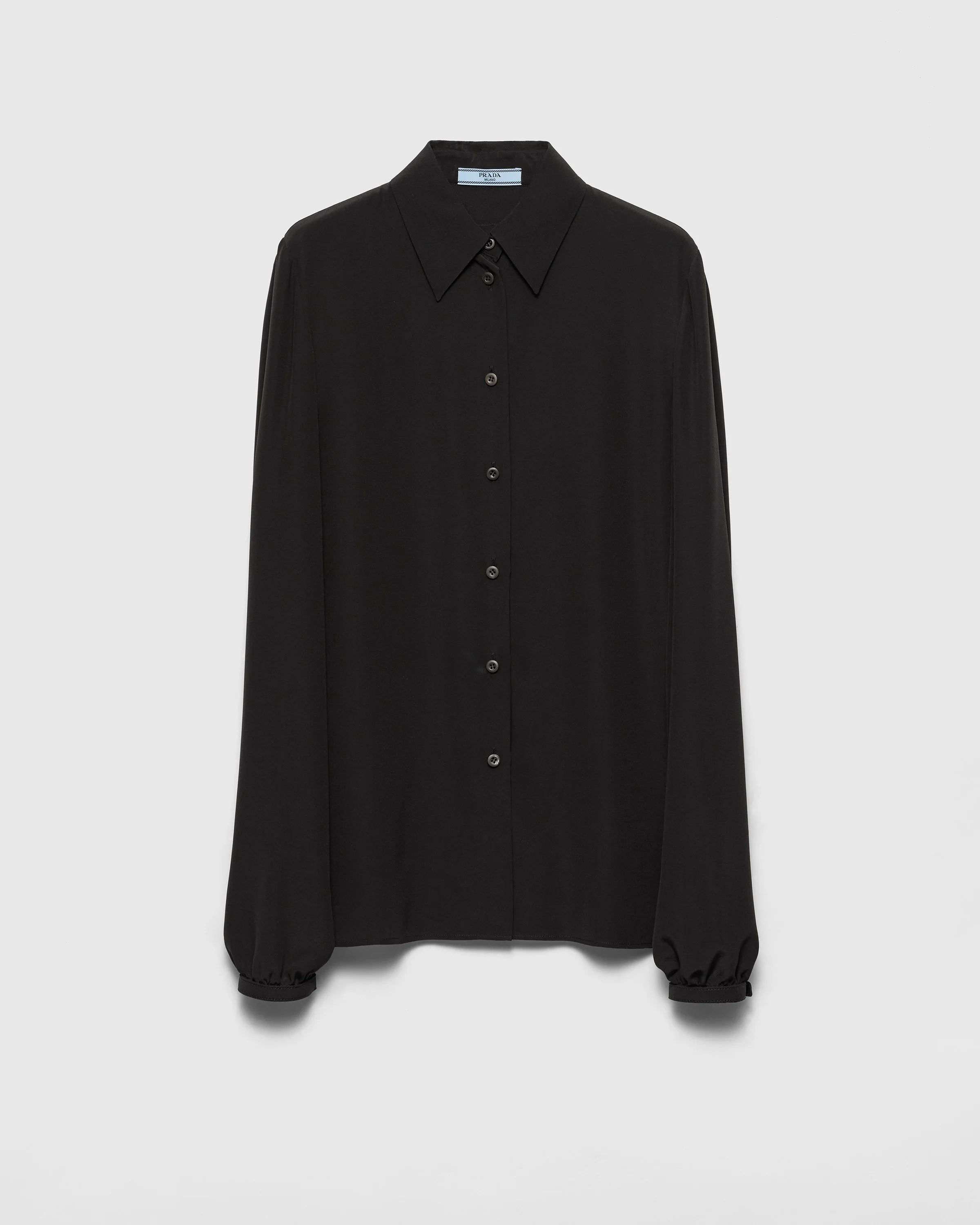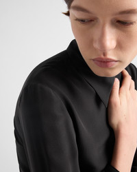 Details with contemporary elegance embellish this slim-fit crepe de chine shirt completed with refined leather straps on the cuffs. - Product code: P450HE_12L0_F0002_S_OOO - Slim fit - Shirt collar - Front button closure - Sleeves with buttoned cuffs - Fabric triangle logo - Leather straps on the cuffs - Imported Height: 65cm MATERIALS Silk