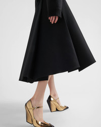 This flared cloth skirt has wide pleats. The A-line style is characterized by angled pockets and side zipper closure. - Product code: P196U_117M_F0002_S_222 - Flared fit - Side zipper closure with hook - Angled pockets - Wide pleats - Height: 88cm MATERIALS Wool