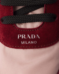 Collapse sneakers have a lightweight, deconstructed design enriched with a mix of materials that reflects Prada's sporty and artisanal soul. The footwear made of Re-Nylon and suede is defined by thin soles and elastic sides that make it easy to slip on the shoe. - Product code: 1E959N_LZ4_F04VD_F_005 - Fabric lining - Screen-printed logo - Cotton laces - Rubber sole, 05 mm - Tread with a geometric pattern - Removable leather-covered insole - Imported MATERIALS Main material: Recycled Polyamide Recycled Polyester