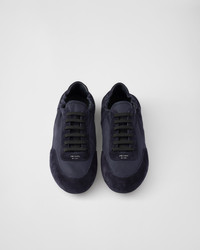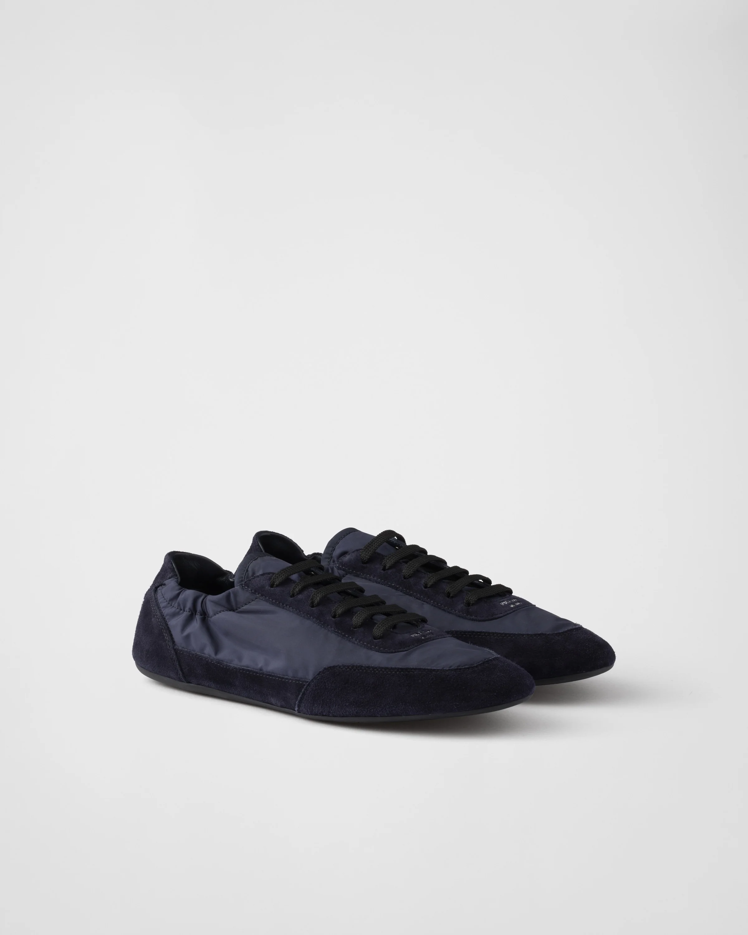 This incredibly lightweight sneaker with a structured design made of Re-Nylon and suede features a mix of materials that embodies Prada's sporty and artisanal soul. Its flat sole recalls the classic ballerina, enriched with elastic on the sides that makes it easy to slip on. This product does not contribute to the SEA BEYOND educational program. - Product code: 1E959N_D7C_F0008_F_005 - Leather lining - Screen-printed logo - Cotton laces - Rubber sole, 05 mm - Tread with a geometric pattern - Removable leather-covered insole - Imported MATERIALS Main material: Recycled polyamide recycled polyester