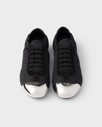 The light, deconstructed design of these Collapse sneakers embodies Prada's artisan and sporty soul. The Re-Nylon and suede shoe is enriched with metal toecap, a bold detail contrasting with the soft, flexible silhouette. This product does not contribute to the SEA BEYOND educational program. - Product code: 1E990N_D7C_F0002_F_005 - Upper with metal toecap - Fabric lining - Cotton laces closure - Rubber sole, 5 mm - Tread with geometric pattern - Removable leather-covered insole - Imported MATERIALS Main material: Recycled polyamide recycled polyester