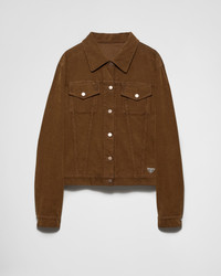 Vintage charm defines this corduroy blouson jacket with a relaxed fit, completed by a strap on the back and decorated with the iconic triangle logo. - Product code: GFB311_1449_F098L_S_OOO - Garment-dyed treatment - Unlined garment - Loose fit - Classic collar - Long sleeves, one-button cuffs - Front button closure - Matching stitching - Flapped patch pockets with button on the chest - Length from center-back: 58 cm, Size: XS - Straight hem with buttons for double adjustment on the back - Triangle logo - Strap with buckle on the back - Prada Milano logo label on the back - Imported Height: 58cm MATERIALS Cotton