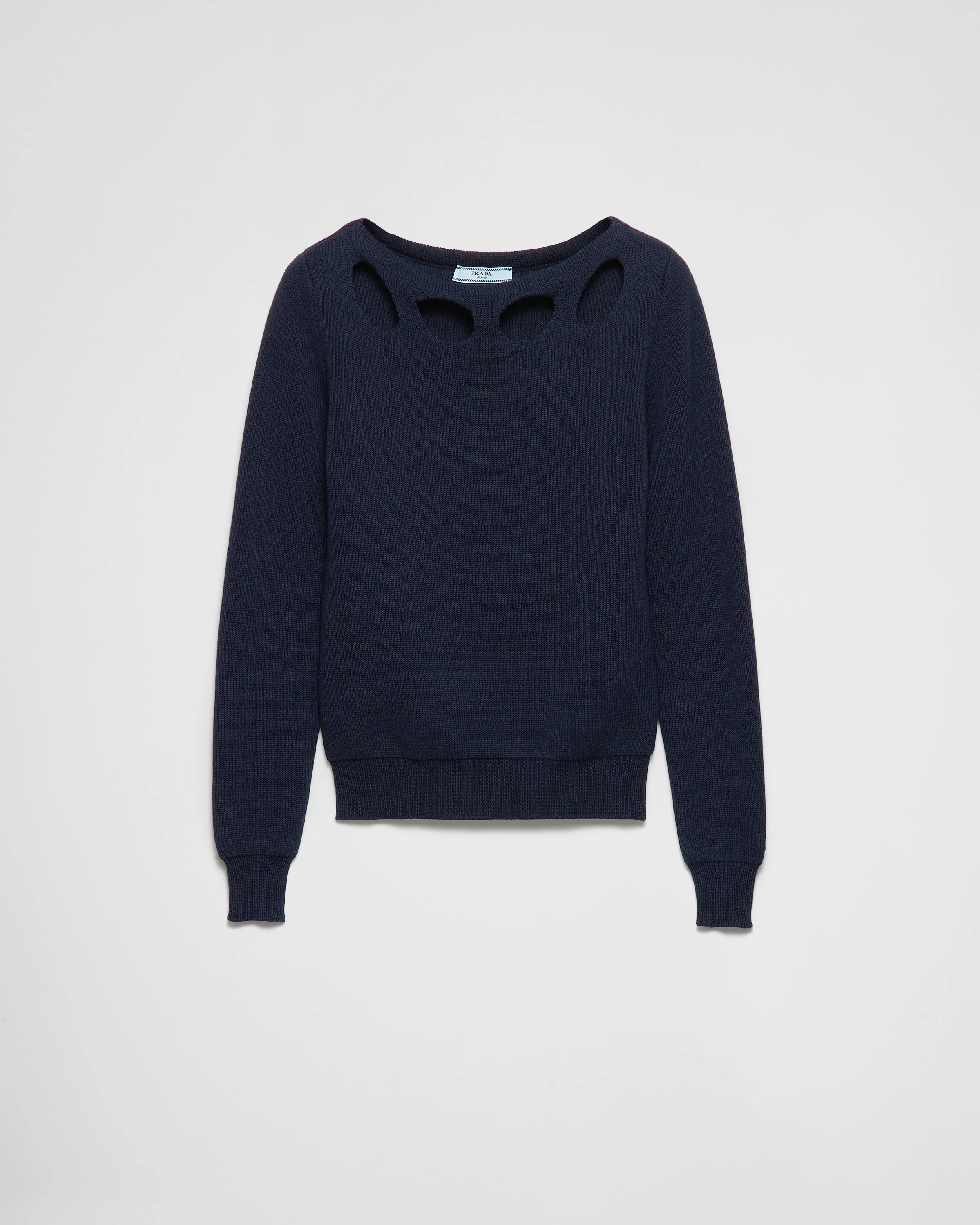 Minimalist geometric shapes animate the design of this cotton sweater defined by the boat neck that adds refined charm to the conceptual silhouette. - Product code: P24P2R_17BH_F0008_S_OOO - Long sleeves - Plain knit - Boxy fit - Regular shoulder - Ribbed knit cuffs and hem - Imported - The model is 176 cm tall and wears a size 38 Height: 58cm MATERIALS Main material: 100% cotton