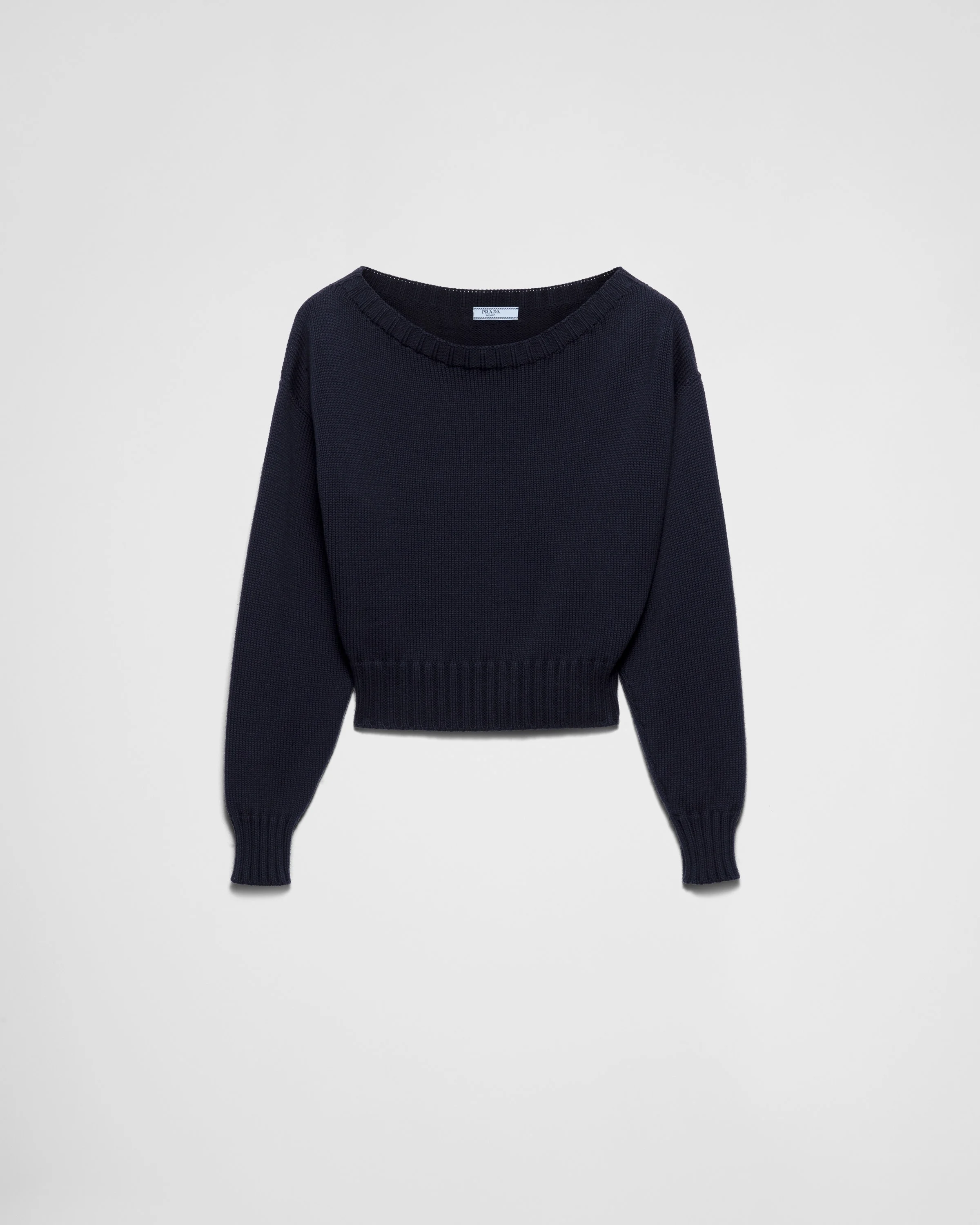 The knit triangle detail on the back is decorated with a stripe motif inspired by the nautical world. - Product code: P24M2P_16O0_F0008_S_OOO - Long sleeves - Plain knit - Boxy fit - Saddle shoulder - Ribbed knit cuffs and hem - Knit triangle logo - Imported - The model is 180 cm tall and wears a size 38 Height: 55cm MATERIALS Main material: 100% cotton