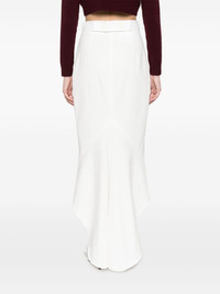 fluted midi skirt Prada radiates elegance through the design of this cotton midi skirt. Imagined in a fresh white hue, its fluted silhouette creates graceful movement. Highlights - White - Cotton - High waist - Two front patch pockets - Fluted skirt - High-low hem - Mid-length Composition Cotton 100% SIZE & FIT Model measurements Height 5 ft 10 in(1.79 m) Bust/Chest 32.67 in(83 cm) Hips 34.25 in(87 cm) Waist 24.4 in(62 cm) FittingInformation Designed with an asymmetric hem, this skirt is intended to be worn high on the waist Made from a midweight non-stretch fabric This piece fits true to size – take your usual size