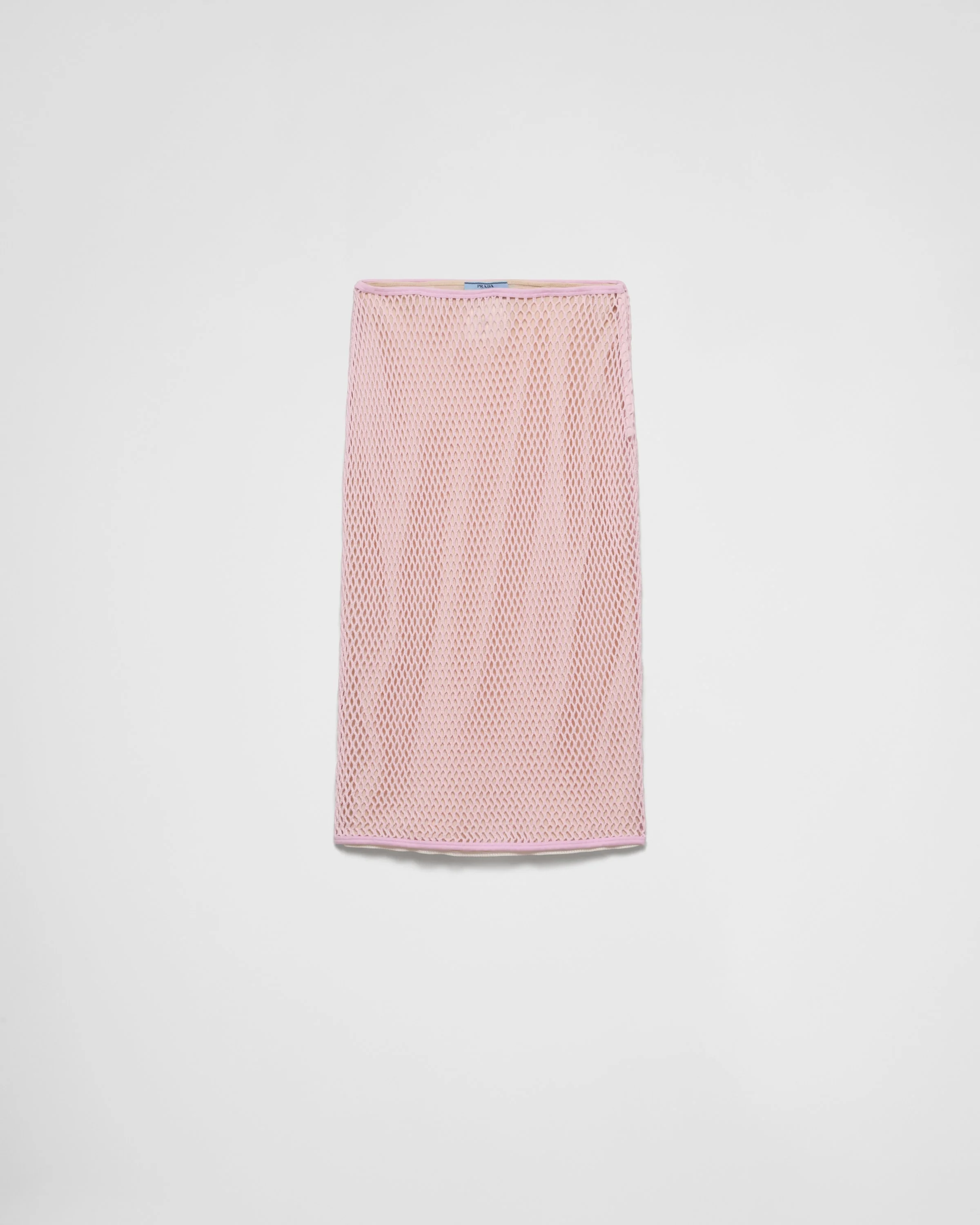 This mesh skirt is made of fine cotton yarn that creates a transparent effect and adds freshness and a sophisticated touch. - Product code: 31143_16ND_F0442_S_OOO - Pencil silhouette - With slip - Side closure with hidden snaps - Enameled metal triangle logo - Ribbed hem - Imported - The model is 178 cm tall and wears a size 38 Height: 62cm MATERIALS Main material: 100% cotton