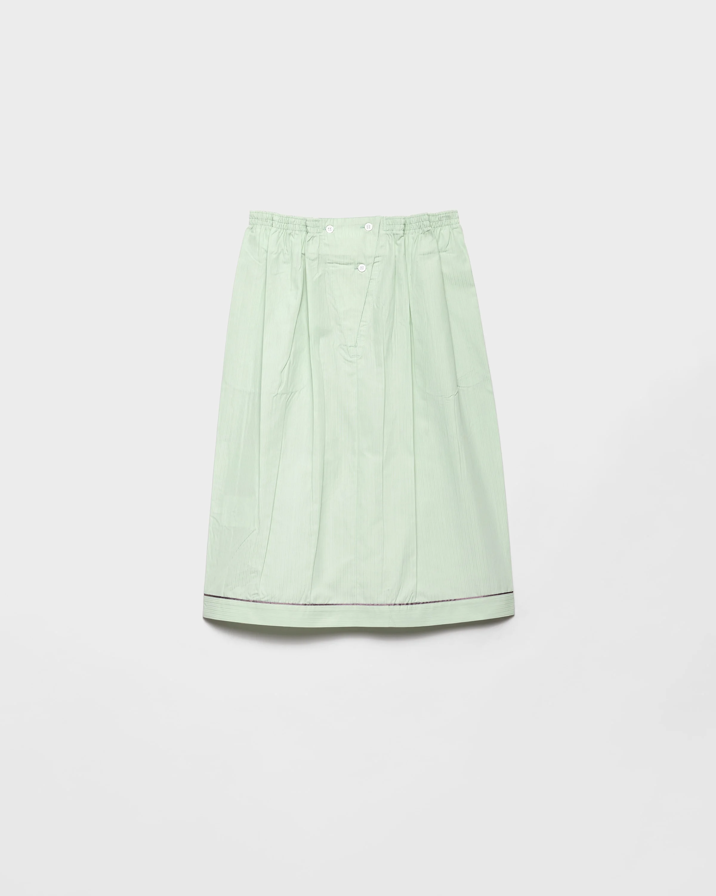 The design of this midi-skirt reinvents the pajama as a garment for everyday use. The skirt made of cotton with a lustrous finish features a draped silhouette and full volumes that are deliberately imperfect and dynamic. The creased effect gives even more character to the style that redefines the functions of clothes and the way they are worn. - Product code: P144ZG_18OU_F0934_S_OOO - Wide fit, gathered silhouette - Unlined garment - Elasticized waistband with front button closure - Inseam pockets - Imported - The model is 178 cm tall and wears a size 38 Height: 67cm MATERIALS Main material: 100% cotton