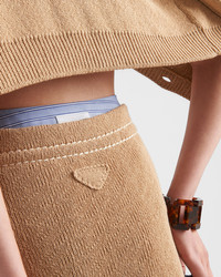 A romantic style with a flared fit, this cotton miniskirt is embellished with a delicate plain knit that enhances the timeless spirit of the brand. The jewelry-inspired button embellishes the style. - Product code: 21485_14XT_F0627_S_OOO - Plain knit with embroidery - Flared fit - Knitted triangle logo - Imported - The model is 178 cm tall and wears a size 38 Height: 45cm MATERIALS Cotton