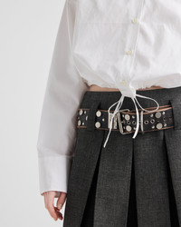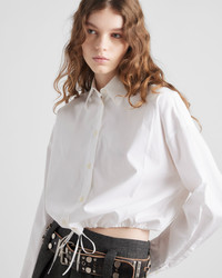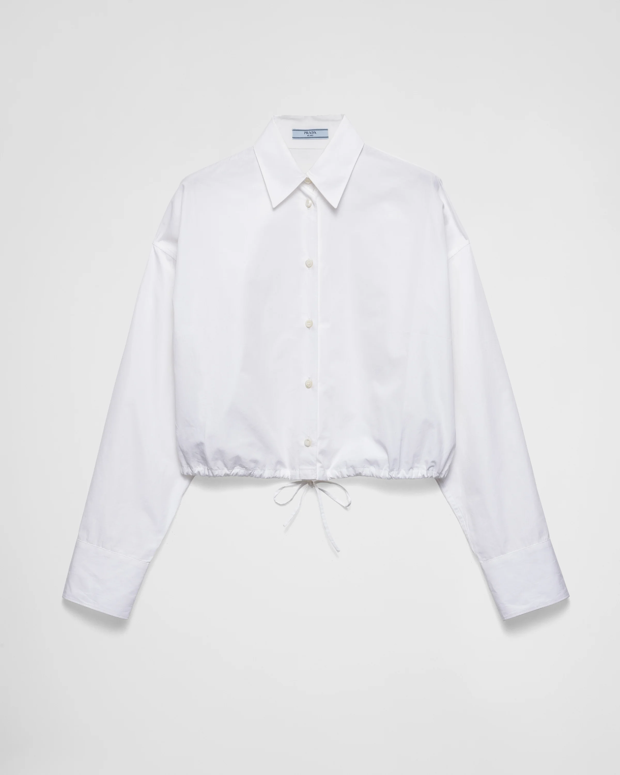 Wardrobe staples are reinterpreted with new lines and unexpected details. This poplin shirt is characterized by its soft, round volume created by the drawstring hem that gives the menswear-inspired style a casual and contemporary touch. - Product code: P400I_1XV2_F0009_S_OOO - Menswear fit - Unlined - Classic collar - Front button closure - Sleeves with classic cuffs - Fabric triangle logo - Straight hem - Drawstring detail on the hem - Imported - The model is 178 cm tall and wears a size 38 Height: 45cm MATERIALS Main material: 100% cotton