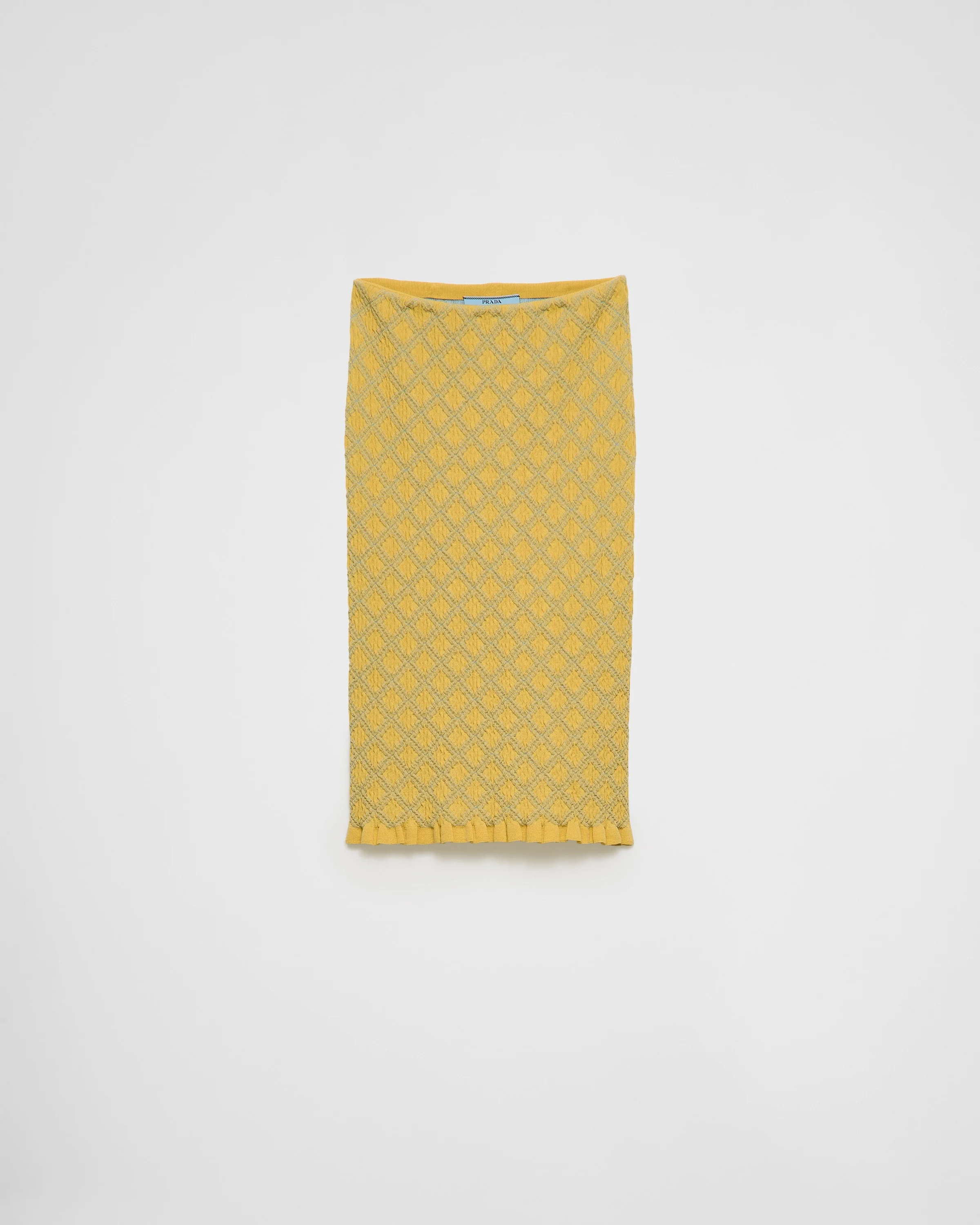 The smock stitch enriches this cotton pencil skirt, transforming the sleek garment into a sophisticated, contemporary design. - Product code: 21527_16X0_F0010_S_OOO - Jacquard knit - Pencil silhouette - Knit triangle logo - Imported - The model is 178 cm tall and wears a size 38 Height: 33cm MATERIALS Main material: 82% cotton 18% polyamide