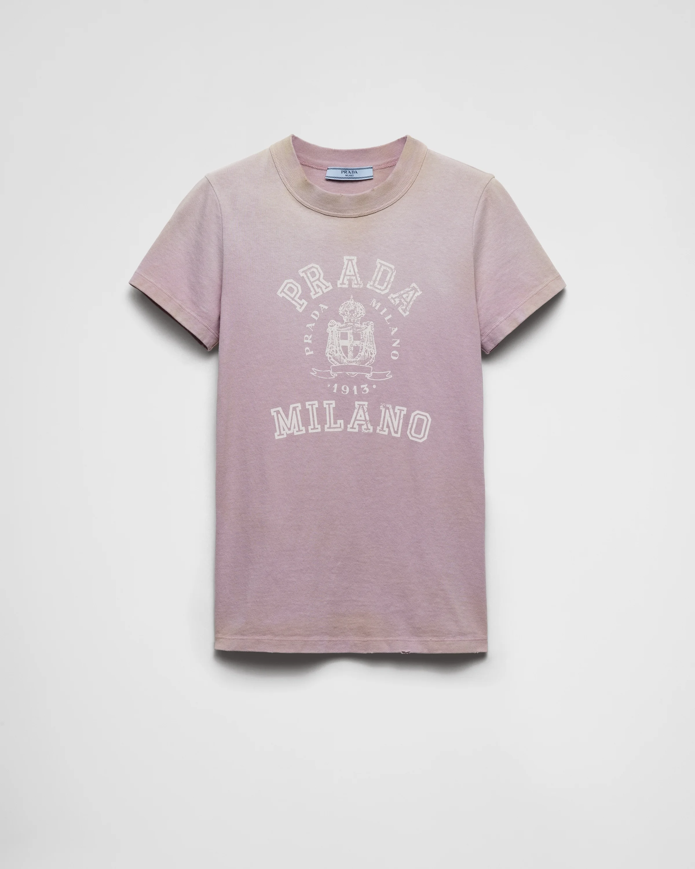 The college style, blending sporty elements and retro touches, inspired the design of this jersey tee with a used-look finish. The vintage charm of the style is emphasized by the logo printed on the front, while the knit triangle adds an unexpected touch of texture and color. - Product code: 3557B_16XS_F0203_S_OOO - «Logo» print - Straight fit - Ribbed knit crew neck - Short sleeves - Knit triangle logo - Imported - The model is 179 cm tall and wears a size 38 Height: 56cm MATERIALS Main material: 100% cotton
