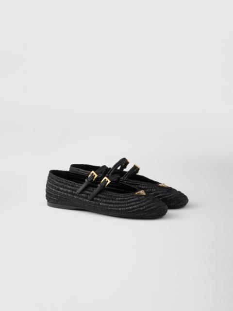An expression of artisanal excellence, these classic ballerina flats are crocheted to create a refined texture on these timeless shoes. - Product code: 1F927N_2ACS_F0018_F_005 - Upper with straps and buckles - Enameled metal triangle logo - Monoblock rubber sole, 5 mm, with hot-stamped logo - Imported MATERIALS Main material: Viscose