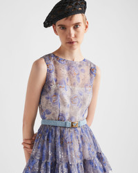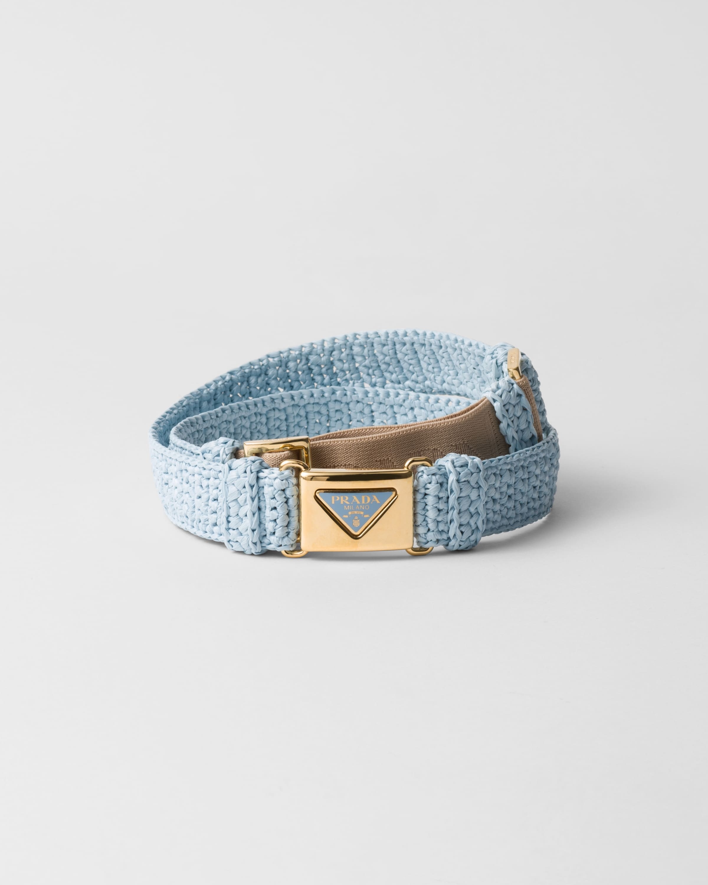 This crochet belt with refined details features a simple design with a light, modern touch. The accessory with shiny gold-tone metal hardware is completed by a plaque buckle embellished with the triangle logo. - Product code: 1CM265_2C2T_F0012 - Raffia-effect yarn - Buckle with enameled metal triangle logo - Imported Height: 2.5cm MATERIALS See material in product details
