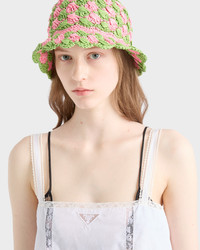 A refined handmade crochet pattern animates this hat with sophisticated style. - Code du produit: 1HC417_2CQ2_F0WHE - Raffia-effect yarn - Enameled metal triangle logo - Importe MATERIALS Matiere principale : Brass