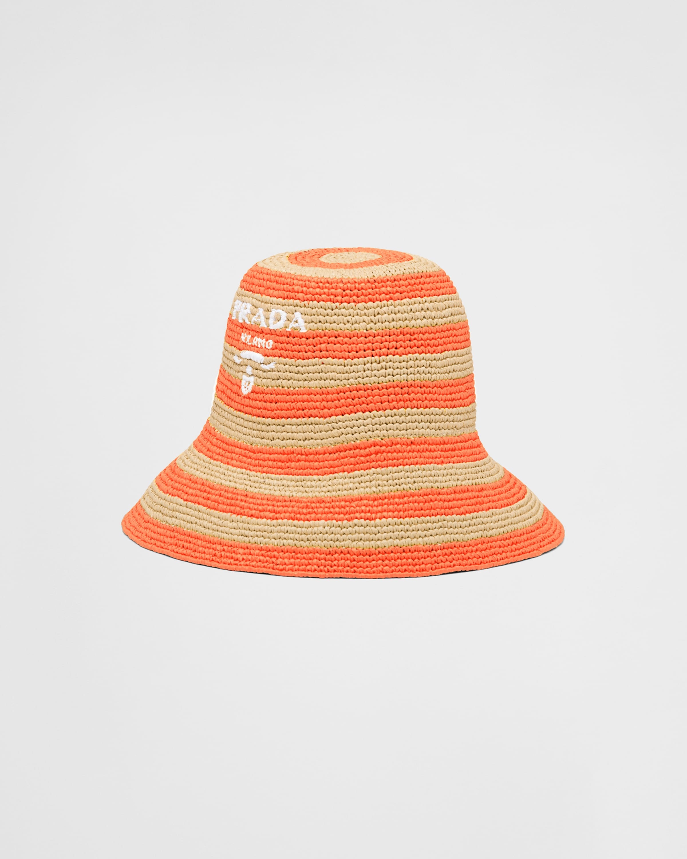The memory of past summers inspires this lightweight hat made of raffia-effect yarn, which is embellished with Prada's iconic lettering logo reinterpreted as an embroidered detail. Celebrating freedom and individuality, colors and styles mix to create a contemporary, composite collection that echoes archetypes of nautical imagery. - 商品品番: 1HC264_2D1N_F0P6K - Raffia-effect yarn - Crochet workmanship - Embroidered lettering logo - インポート