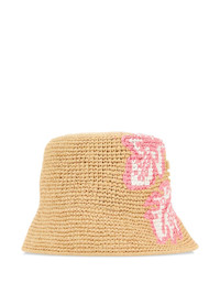 crochet floral-embroidery bucket hat Highlights - Beige - Raffia-effect yarn - Embroidered lettering logo Composition Viscose 100%