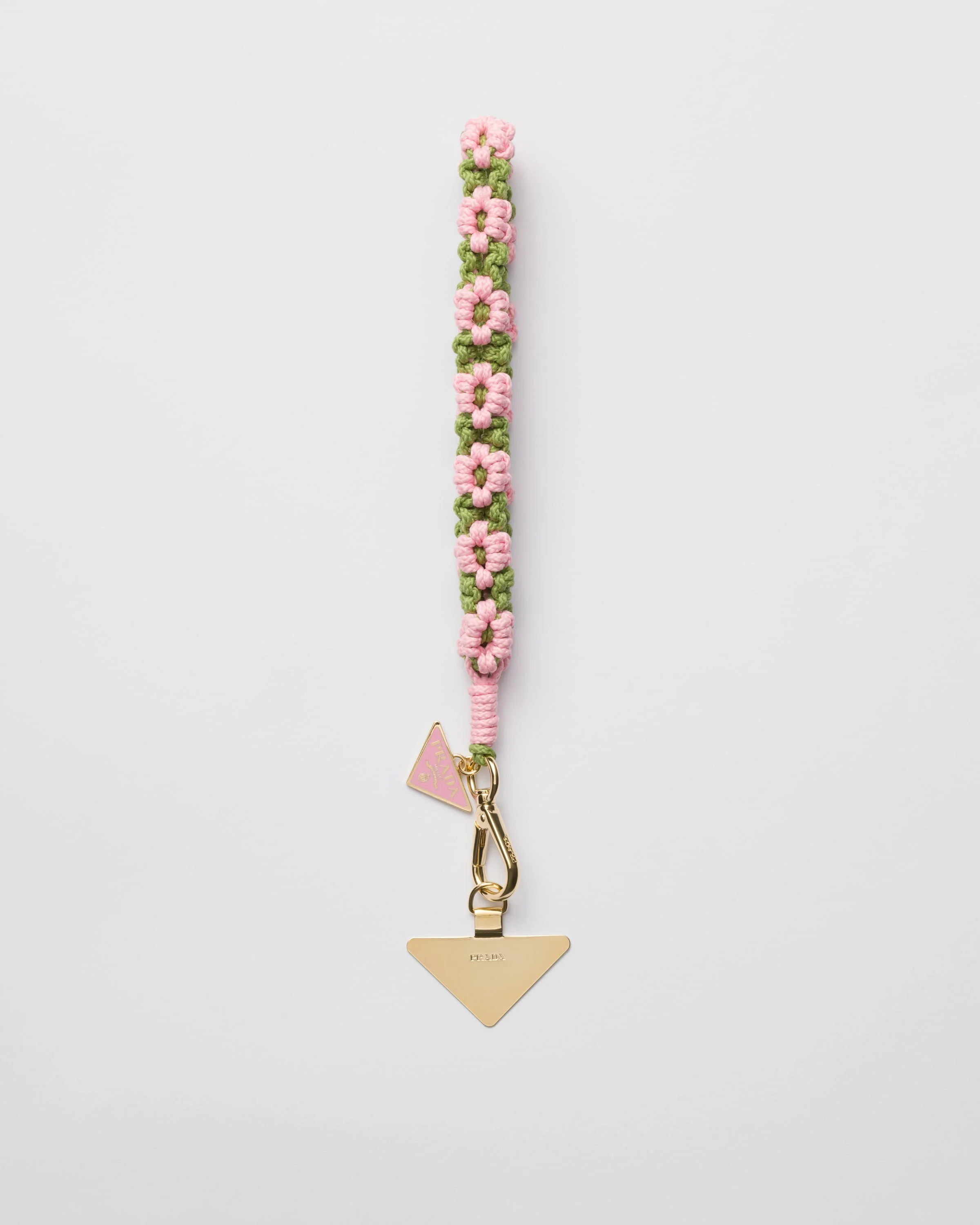 This crochet wristlet for smartphone is a functional and distinctive accessory enriched by the iconic enameled metal triangle logo. - Product code: 1ZT062_2C82_F0WHE - Crochet-effect weave - Enameled metal triangle logo - Imported Height: 22cm MATERIALS Main material: Polyester