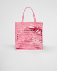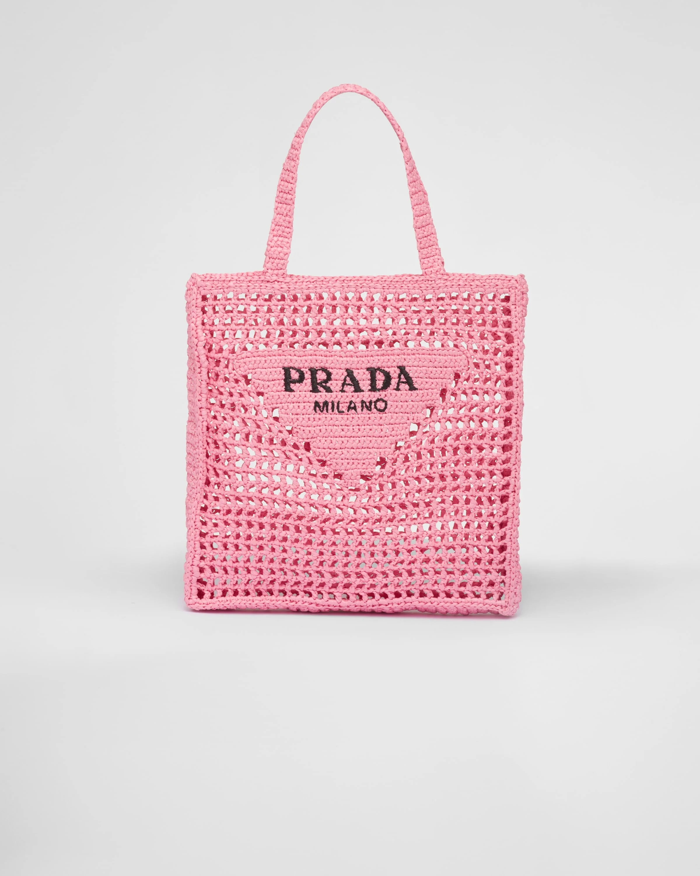 This crochet tote bag with a soft, deconstructed design boasts a light and summery mood. A new interpretation of Prada's emblematic triangle decorates the front and is embellished at its center with the embroidered lettering logo. - Product code: 1BG393_2A2T_F0442_V_OOO - Raffia-effect yarn - Crochet workmanship - Embroidered lettering logo on the front - Unlined - Imported Height: 38cm Width: 36cm Length: 3cm MATERIALS Main material: Viscose