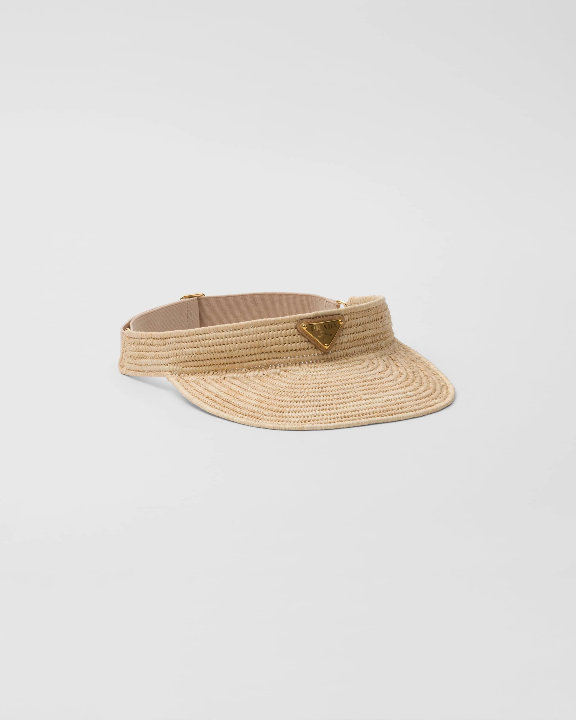 This crochet visor features a sleek, sporty design. The modern and versatile style is embellished with the iconic enameled metal triangle logo. - Product code: 1HV024_2M2T_F0018 - Enameled metal triangle logo - Imported MATERIALS Main material: Viscose