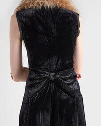 The dialogue between innovation and tradition inspires the design of this elegant and refined dress. The sophisticated style is made of crushed velvet with a soft yet rich texture that emphasizes the lines of the silhouette embellished with a back bow. - Product code: P3Q20G_E21_F0002_S_OOO - Flared fit - Unlined garment - V-neck - Snaps and hook closure on the back - Sleeveless - Inseam pockets - Flared hem - Imported - The model is 180 cm tall and wears a size 38 Height: 120cm MATERIALS Main material: 20% silk 80% viscose