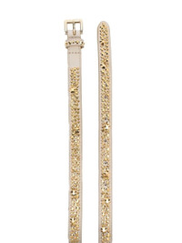 crystal-embellished leather buckle belt from PRADA featuring gold-tone, calf leather, crystal embellishment, gold-tone buckle fastening, punched holes and adjustable fit. Size & Fit Maximum Length: 94cm Minimum Length: 83cm WIDTH: 1.5cm Fabric and Care Designer Style ID: 1CC5552D0H Designer Colour: F0522 Composition: Calf leather 100%Made in Italy