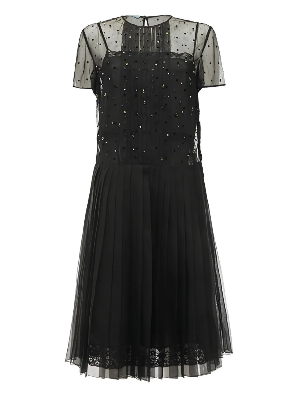 crystal-embellished pleated dress Highlights - Black - Pleated skirt - Crystal embellishment - Short sleeves - Round neckline - Tulle and organza construction - Removable slip Composition Outer: Polyester 100% Silk 100% Washing instructions Read Manufacturer Guidelines